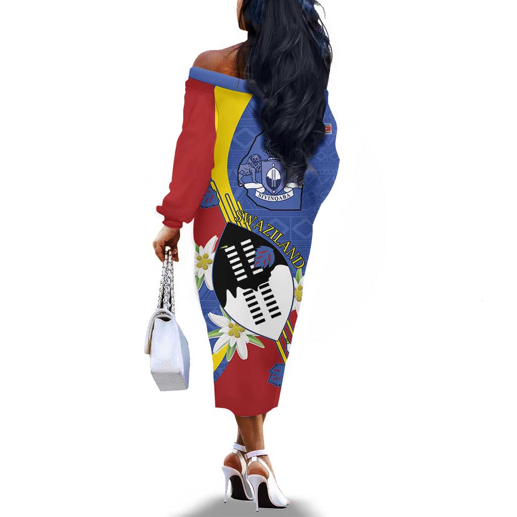 Umbuso weSwatini Off The Shoulder Long Sleeve Dress Nguni Shield Edelweiss Flower