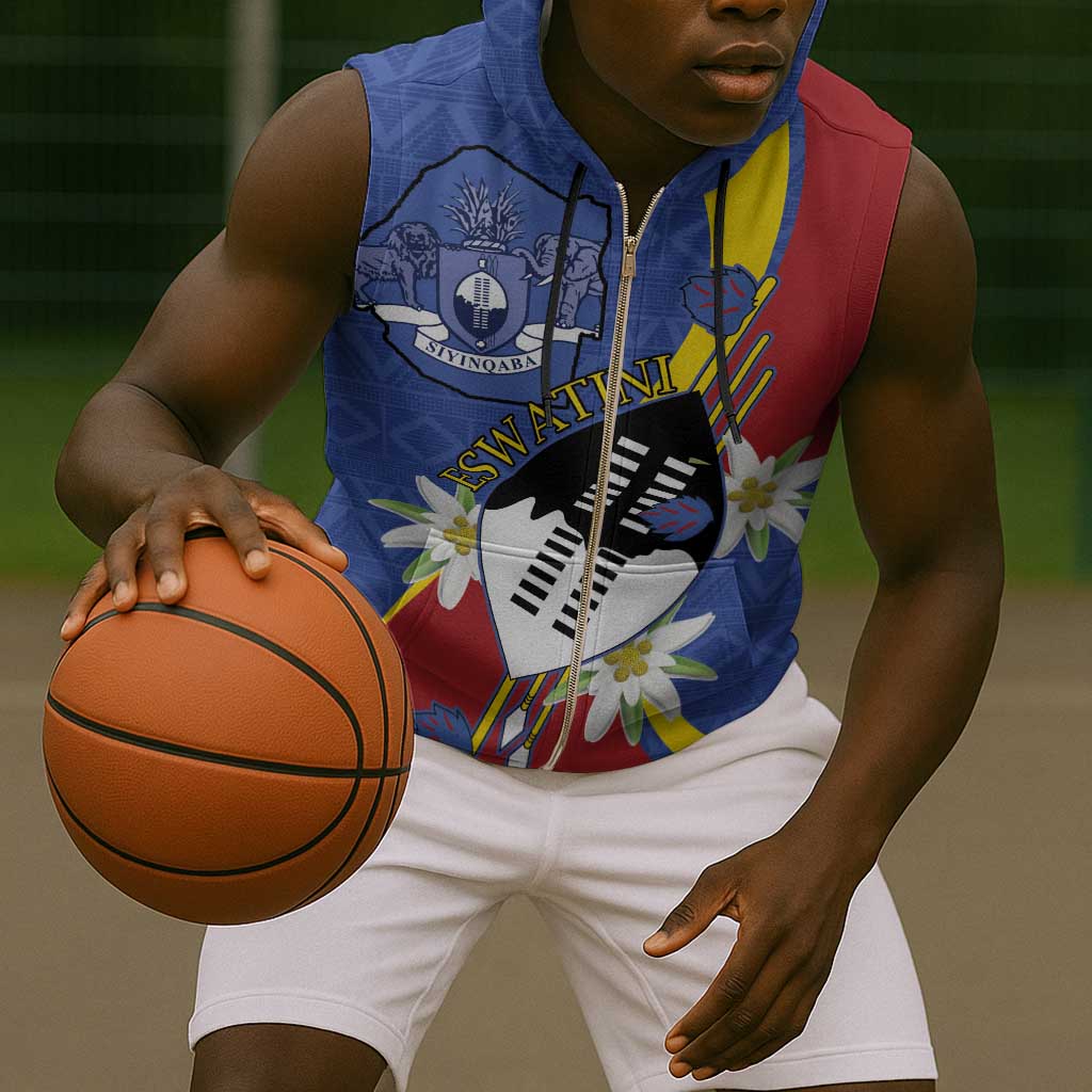 Umbuso weSwatini Sleeveless Zip Hoodie Nguni Shield Edelweiss Flower