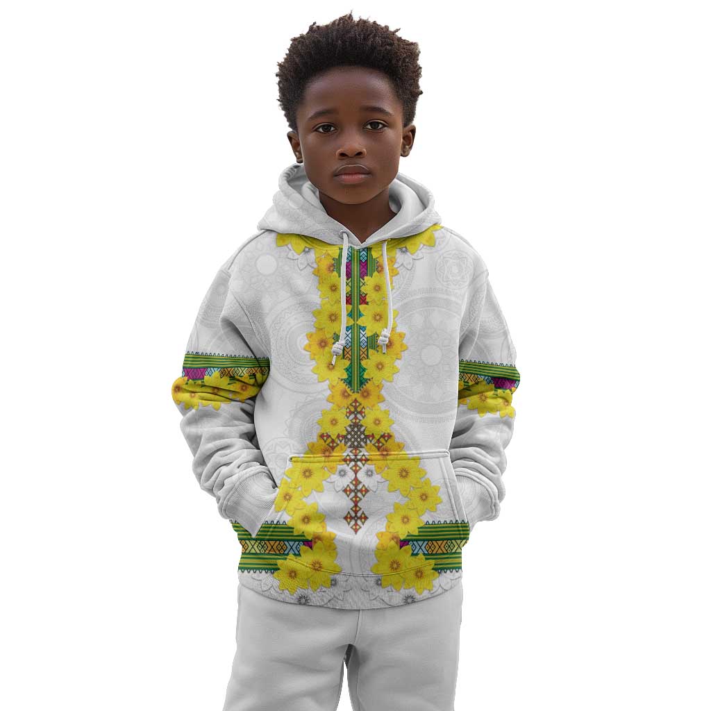 Enkutatash Ethiopia New Year Kid Hoodie Tilet Pattern With Adey Abeba Flowers