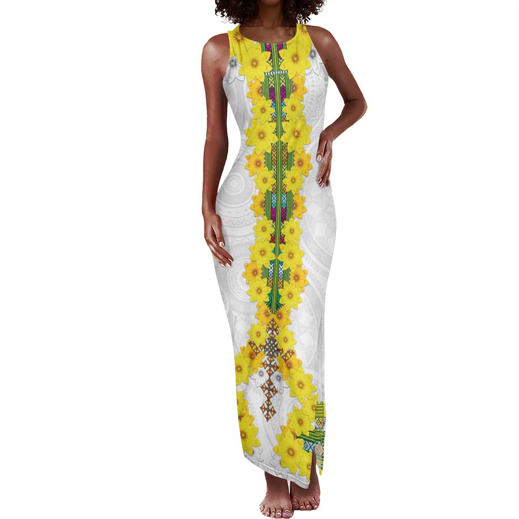 Enkutatash Ethiopia New Year Tank Maxi Dress Tilet Pattern With Adey Abeba Flowers