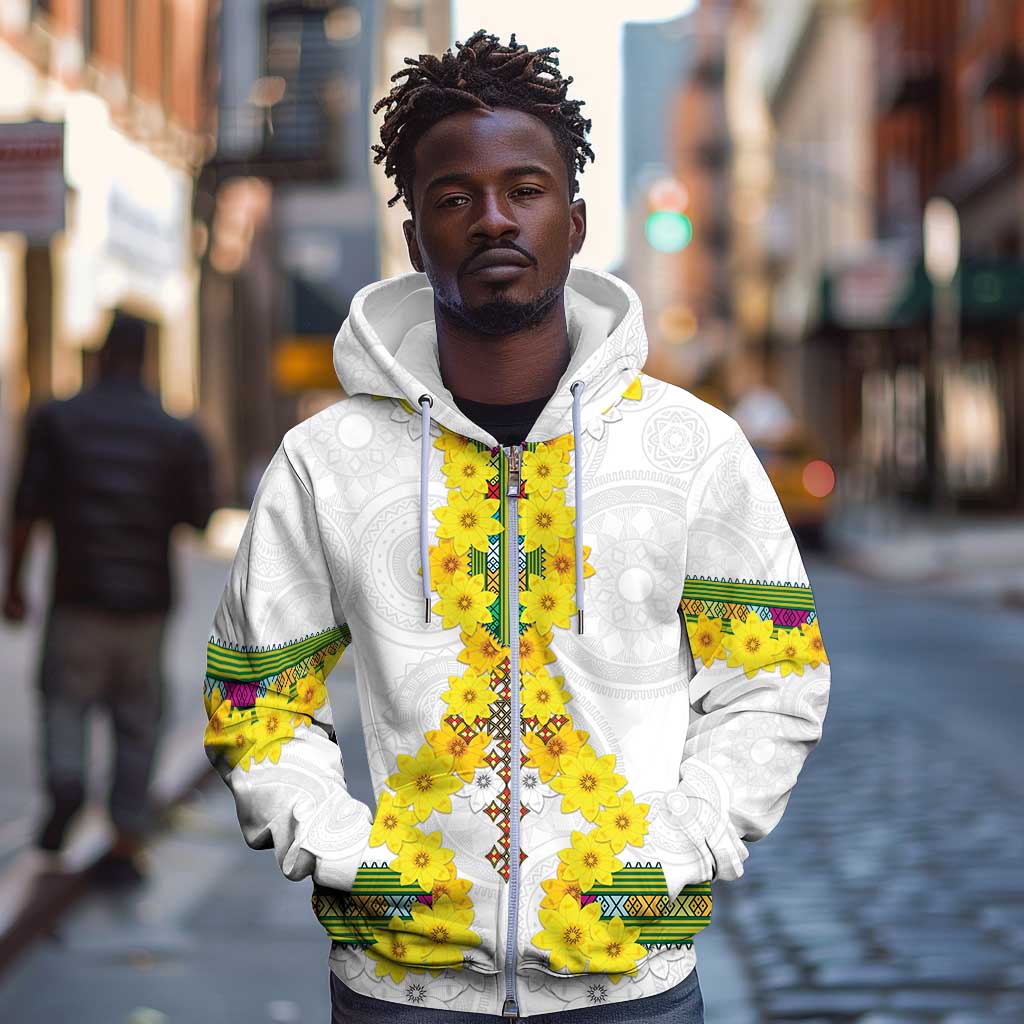 Enkutatash Ethiopia New Year Zip Hoodie Tilet Pattern With Adey Abeba Flowers