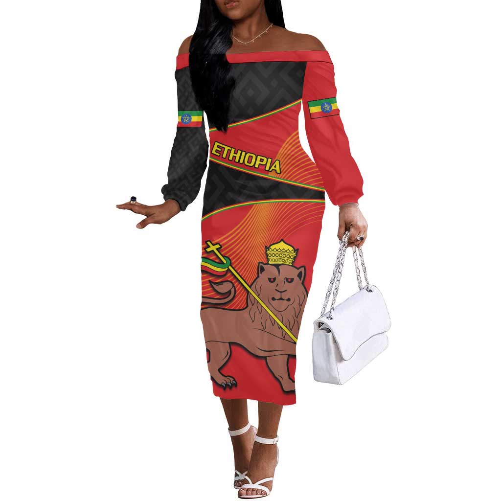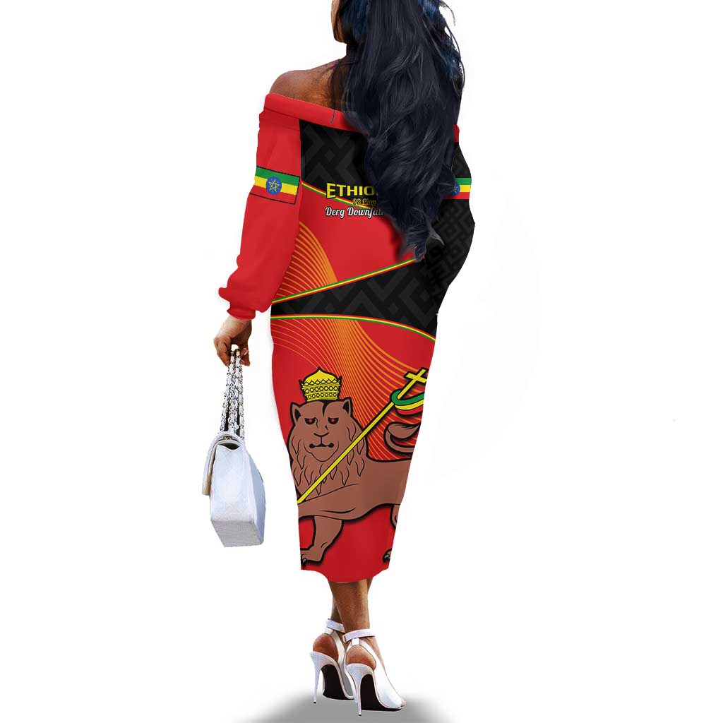 Ethiopia Derg Downfall Day Off The Shoulder Long Sleeve Dress Ethiopian Lion of Judah