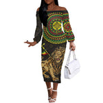 Ethiopia National Day Off The Shoulder Long Sleeve Dress Lion Of Judah African Pattern LT01