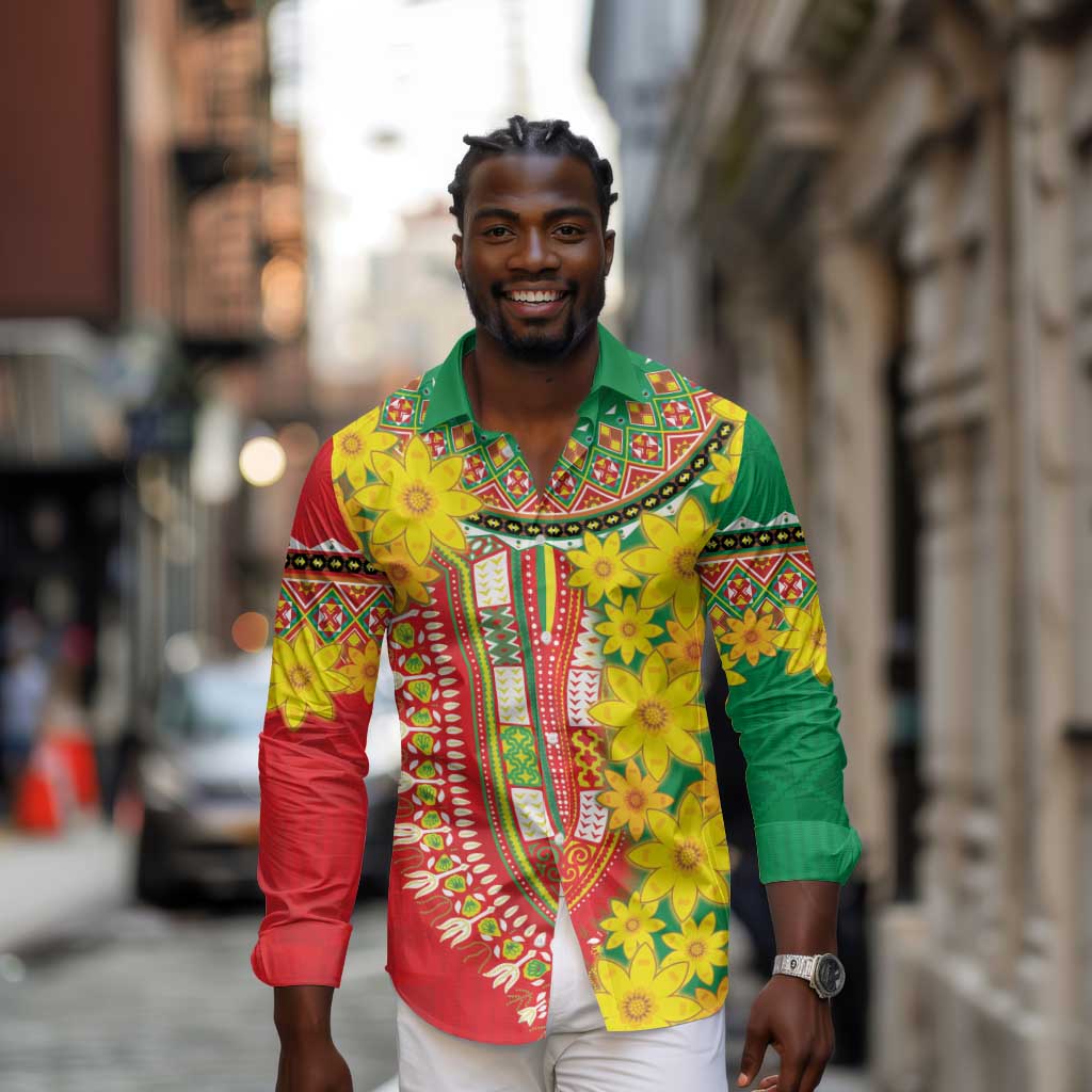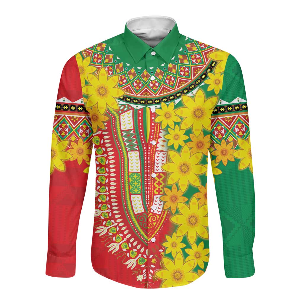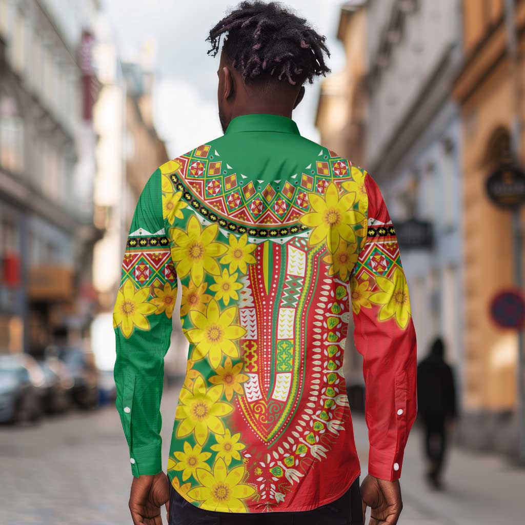 Afro Ethiopian New Year Long Sleeve Button Shirt Enkutatash Adey Abeba Flower Art