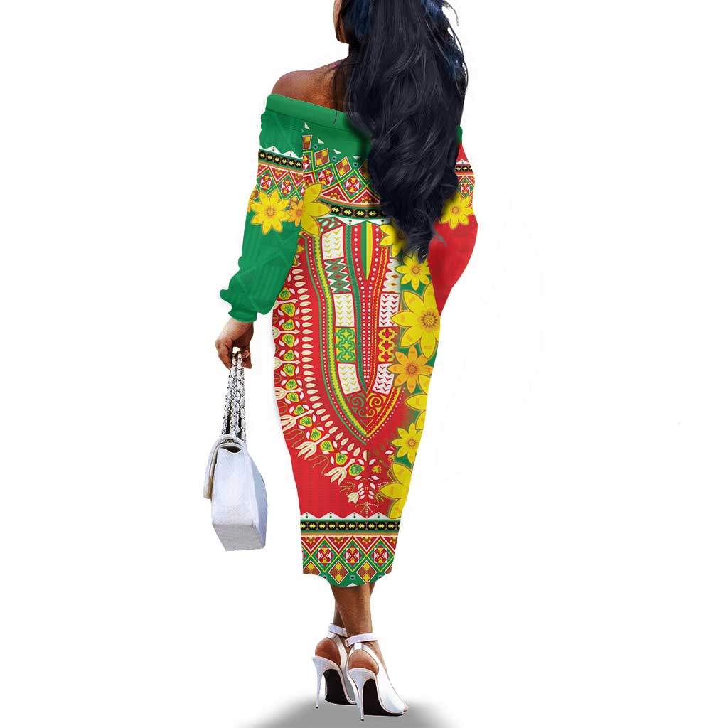 Afro Ethiopian New Year Off The Shoulder Long Sleeve Dress Enkutatash Adey Abeba Flower Art