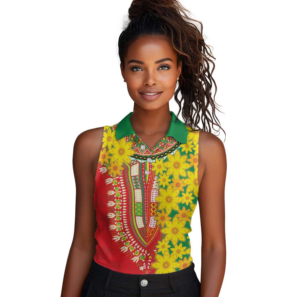 Afro Ethiopian New Year Women Sleeveless Polo Shirt Enkutatash Adey Abeba Flower Art
