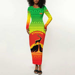 Ethiopia Christmas Long Sleeve Bodycon Dress Mountain Gazelle Sunset Ethiopian Flag TS04