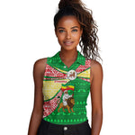 Ethiopia Christmas Women Sleeveless Polo Shirt Santa Riding Lion Ethiopian Flag Colors and Tribal TS04