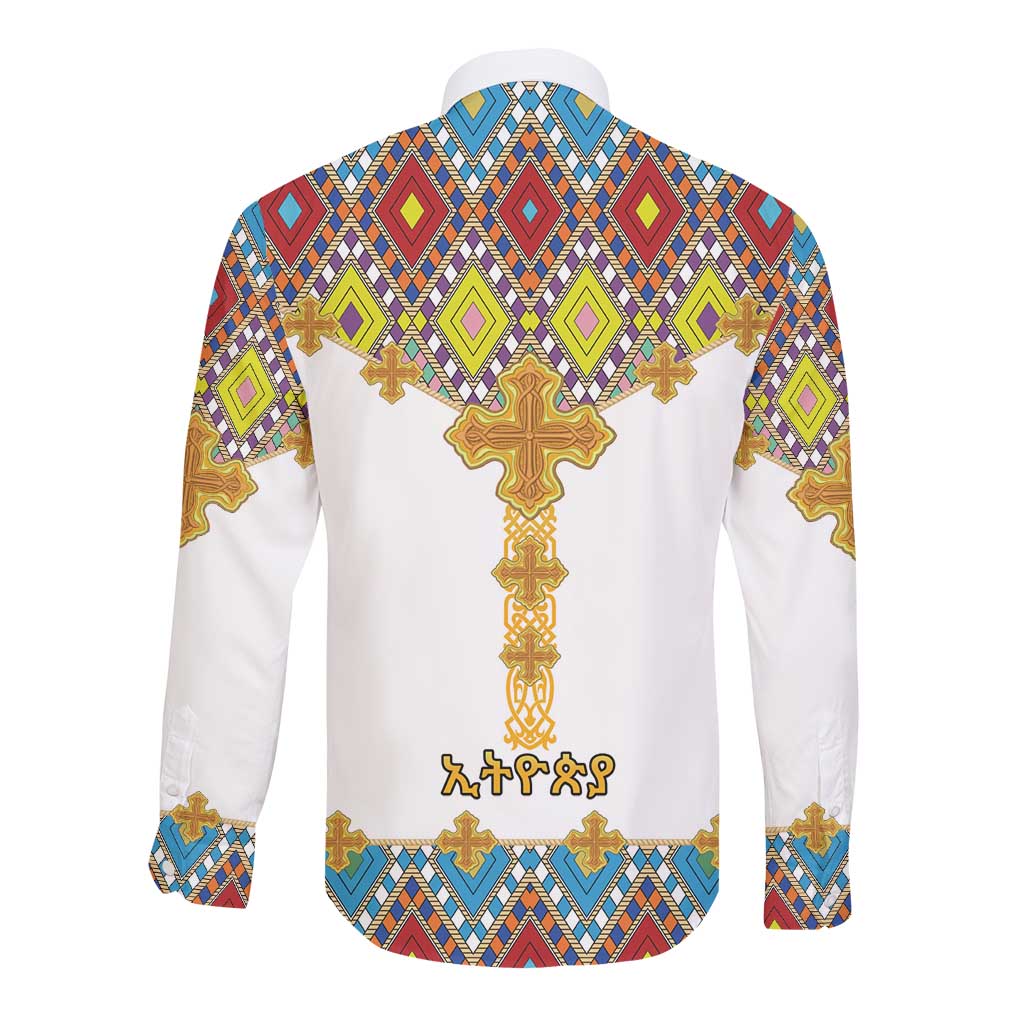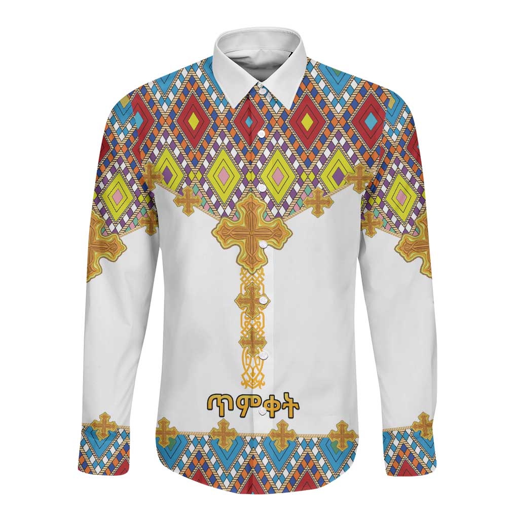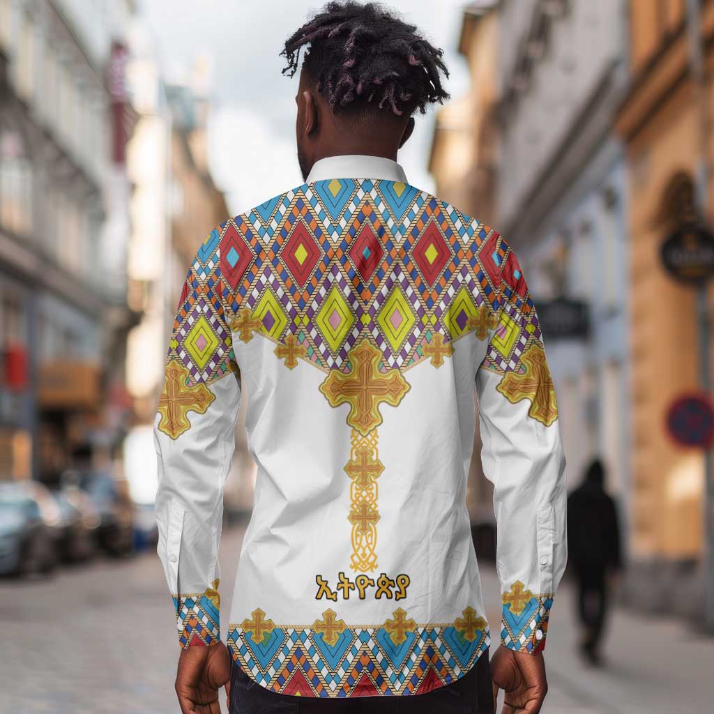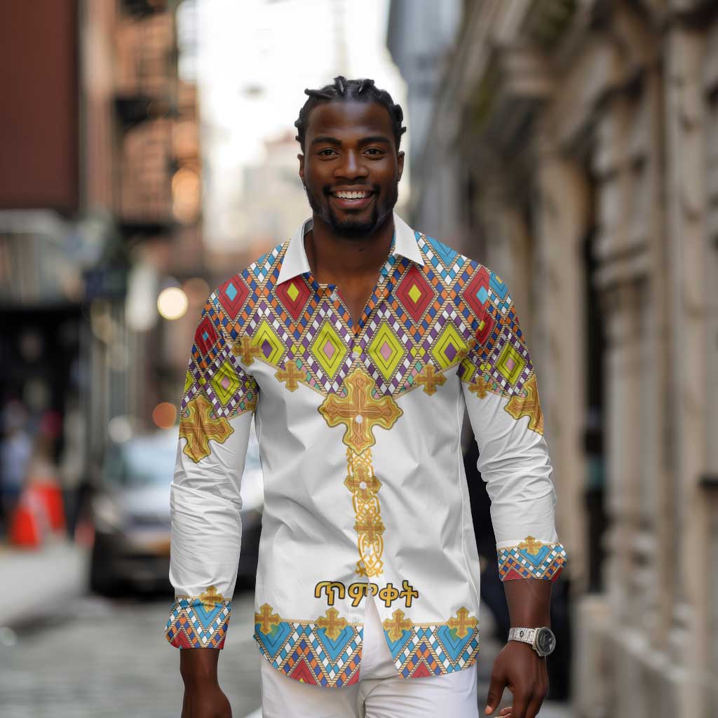 Happy Ethiopian Timkat Long Sleeve Button Shirt Cross Mix Tilet Pattern