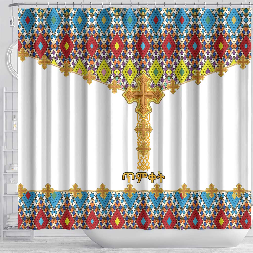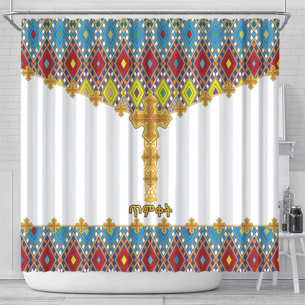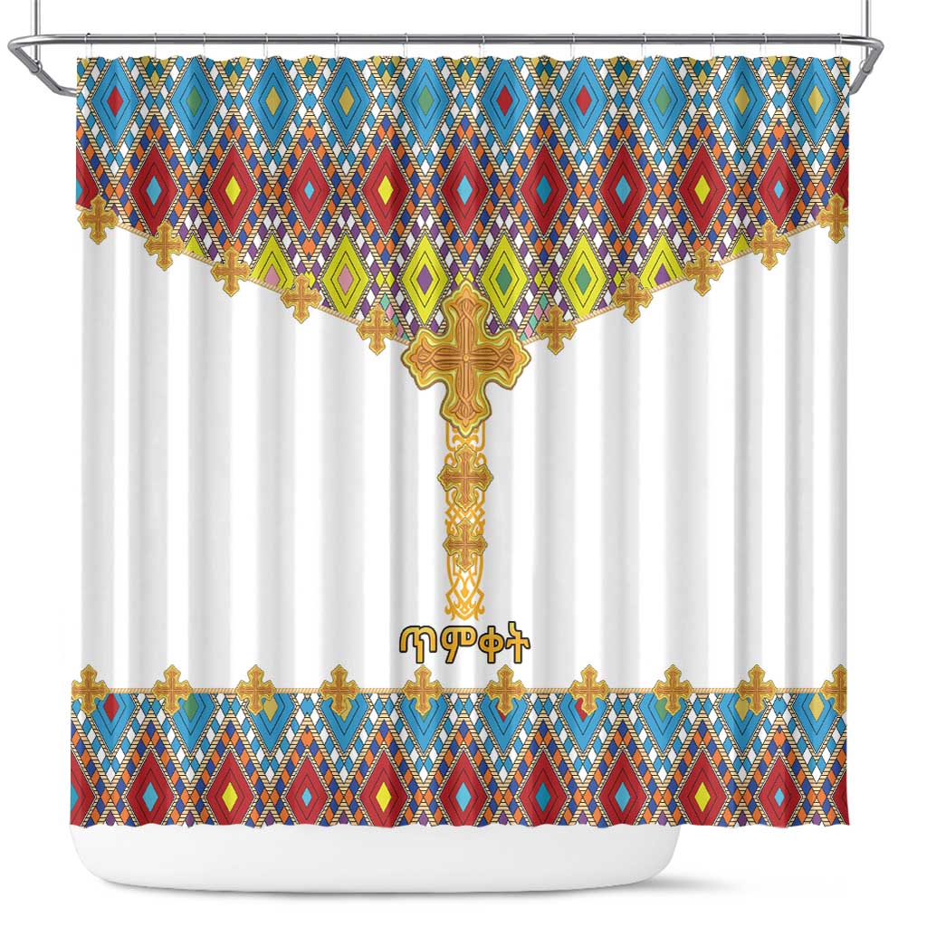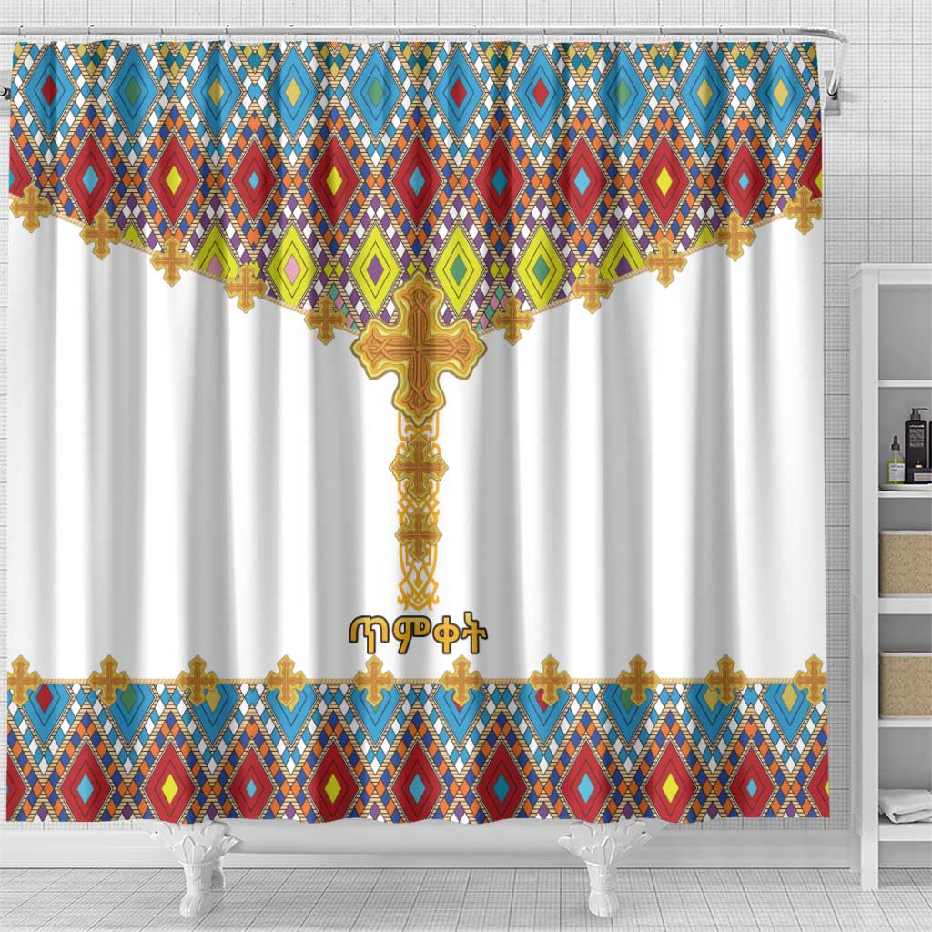 Happy Ethiopian Timkat Shower Curtain Cross Mix Tilet Pattern