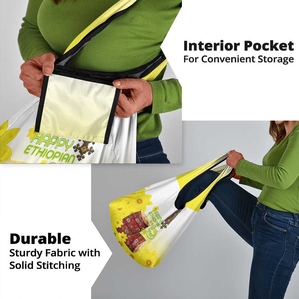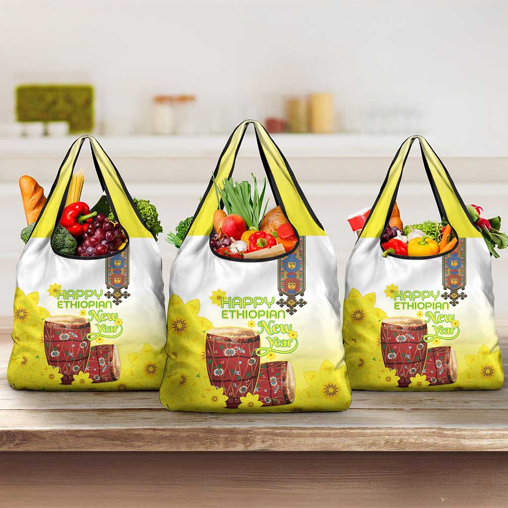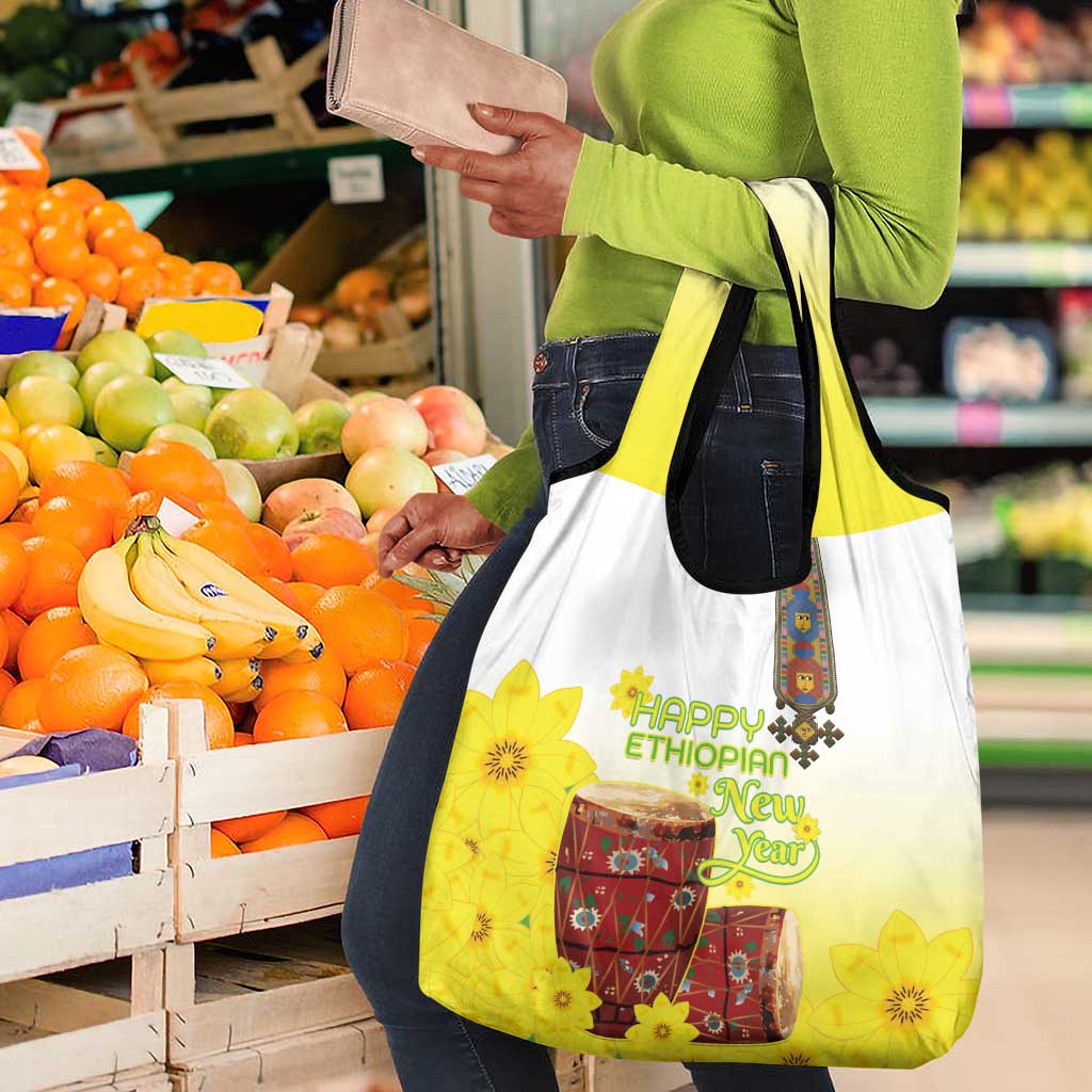 Melkam Enkutatash Ethiopian Grocery Bag Kebero Drum With Adey Abeba Flower
