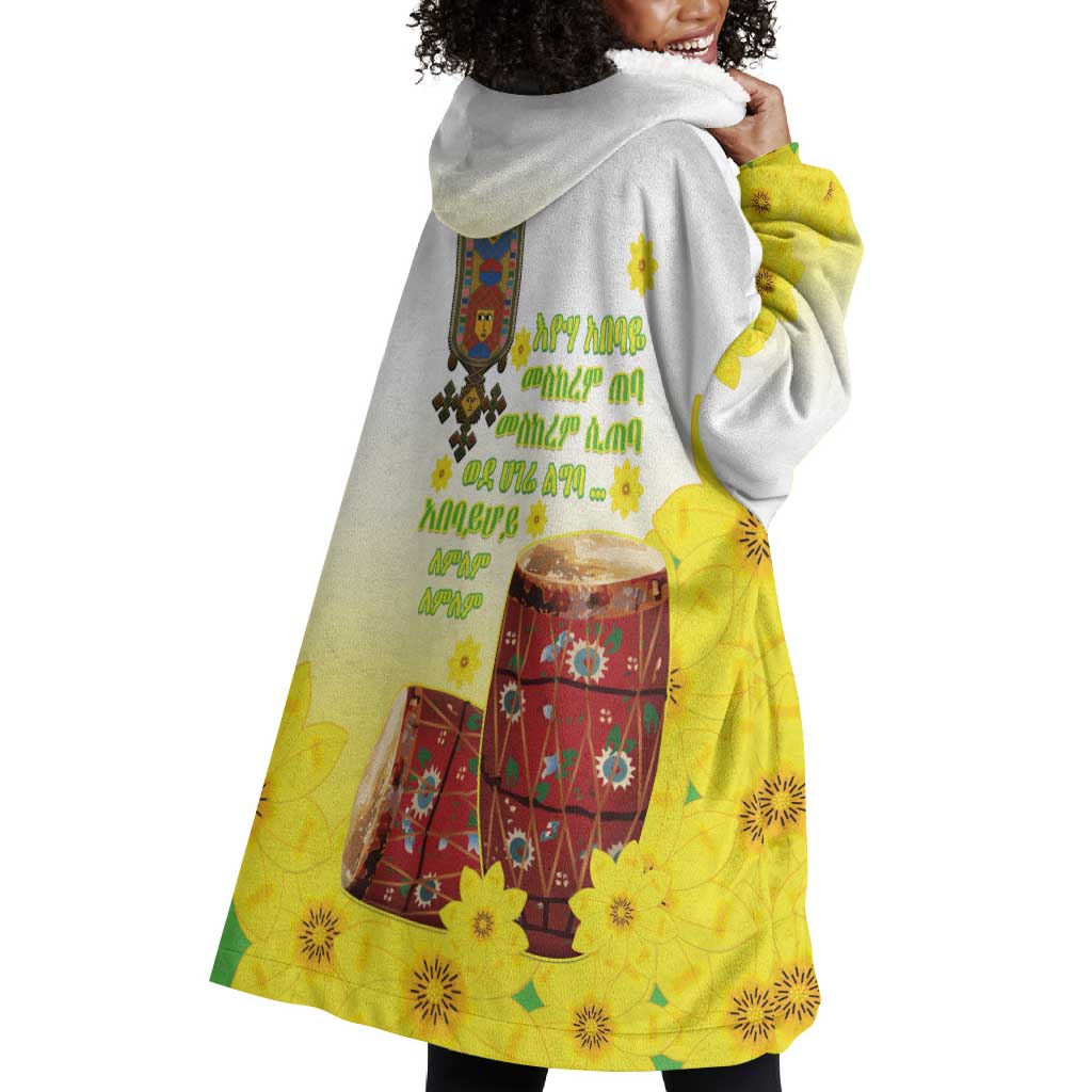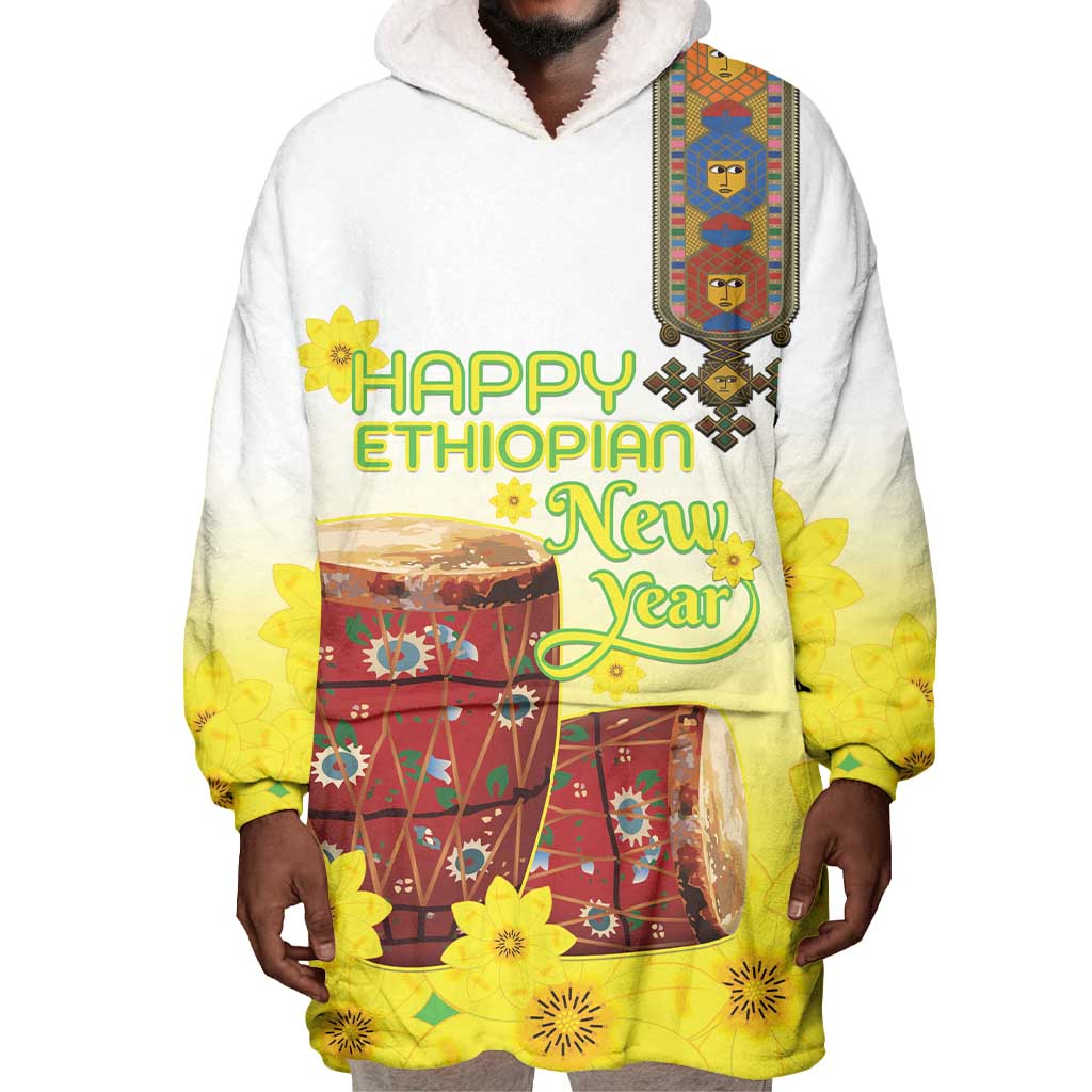 Melkam Enkutatash Ethiopian Wearable Blanket Hoodie Kebero Drum With Adey Abeba Flower