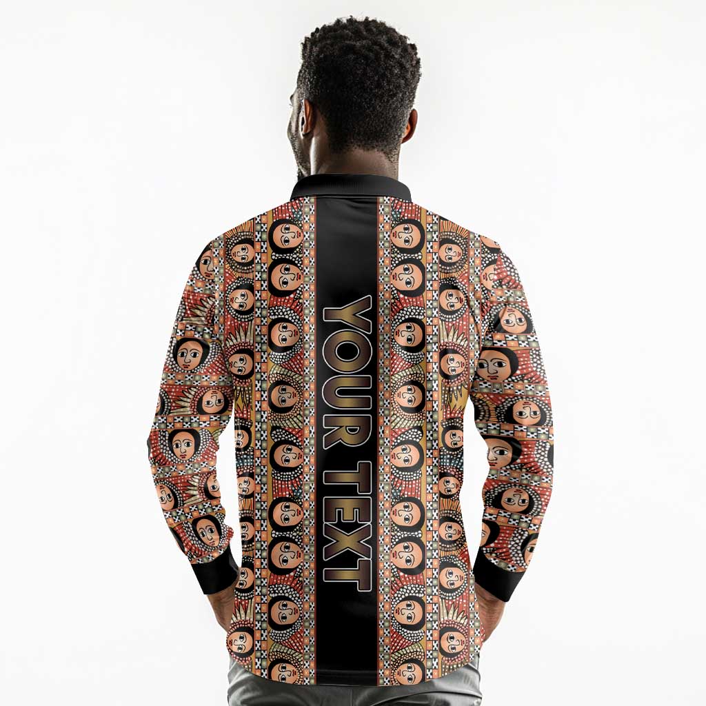 Personalized Ethiopia Long Sleeve Polo Shirt Ethiopian Tewahedo Angel Orthodox Black Color