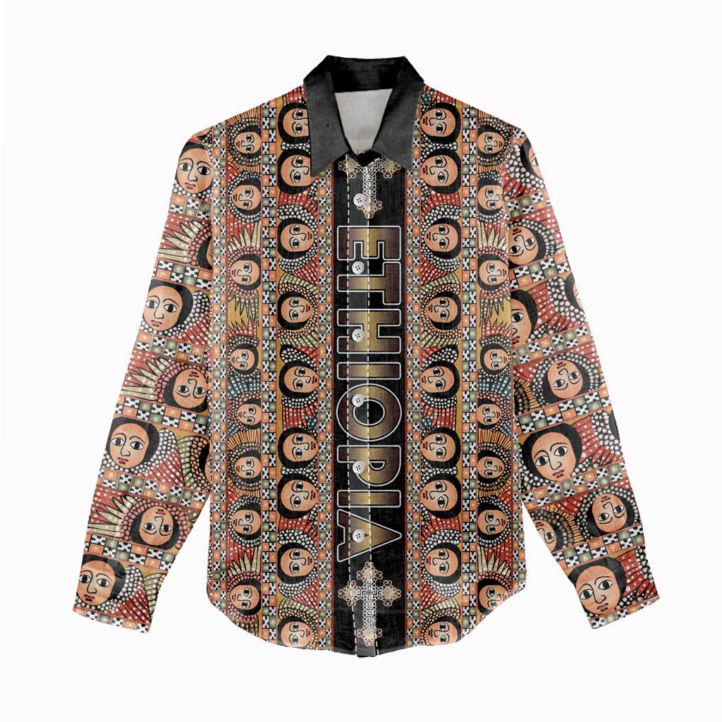 Personalized Ethiopia Women Casual Shirt Ethiopian Tewahedo Angel Orthodox Black Color