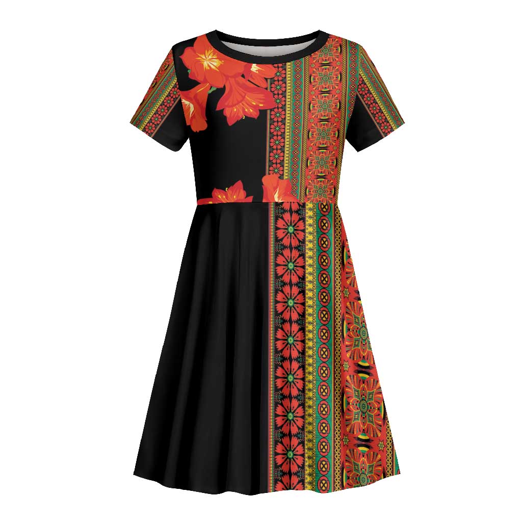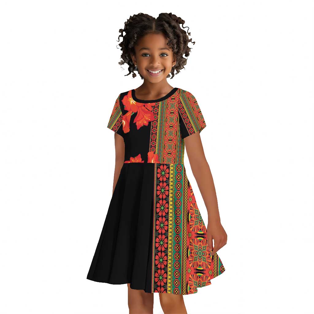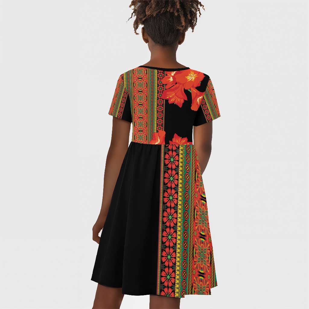 Afro Beauty Clivia Miniata Flowers Kid Short Sleeve Dress