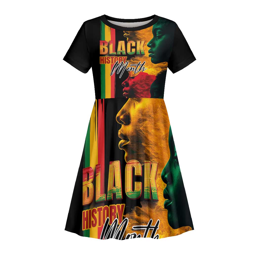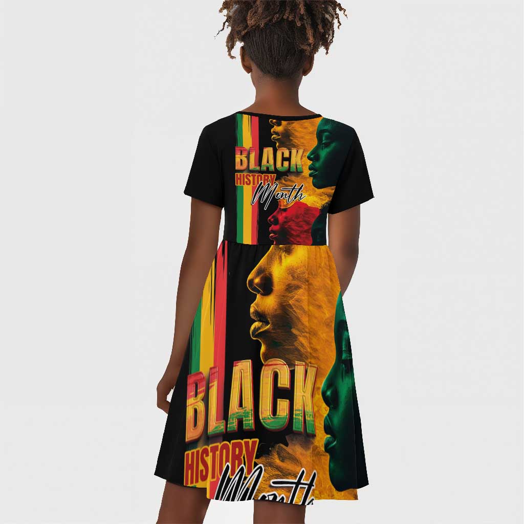 Afro - Black History Month Kid Short Sleeve Dress Black Soul - I'm Black Every Month