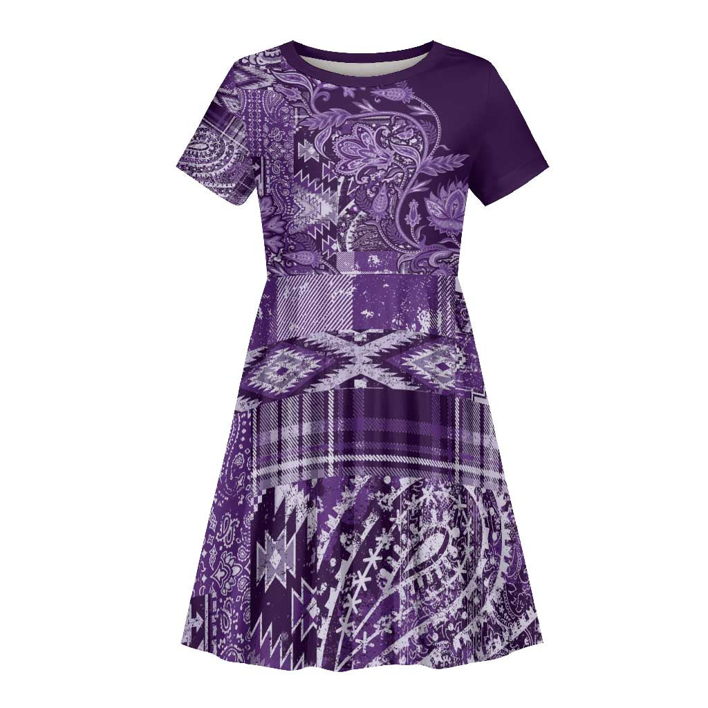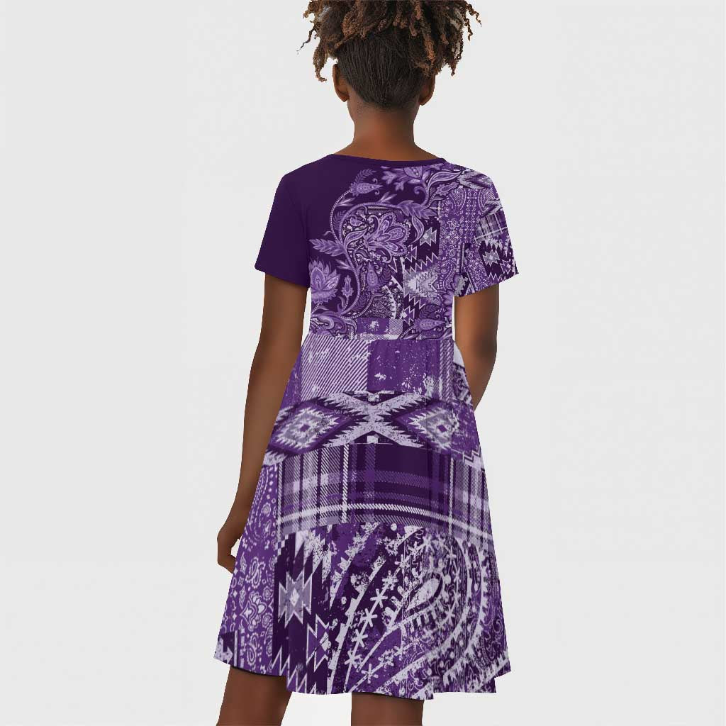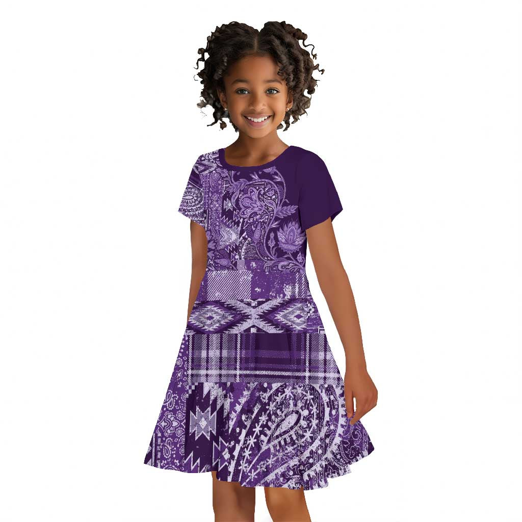Afro Floral mix Maasai Shuka Kid Short Sleeve Dress Purple Moitf