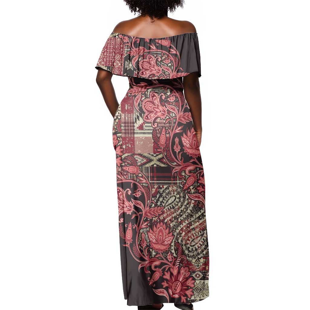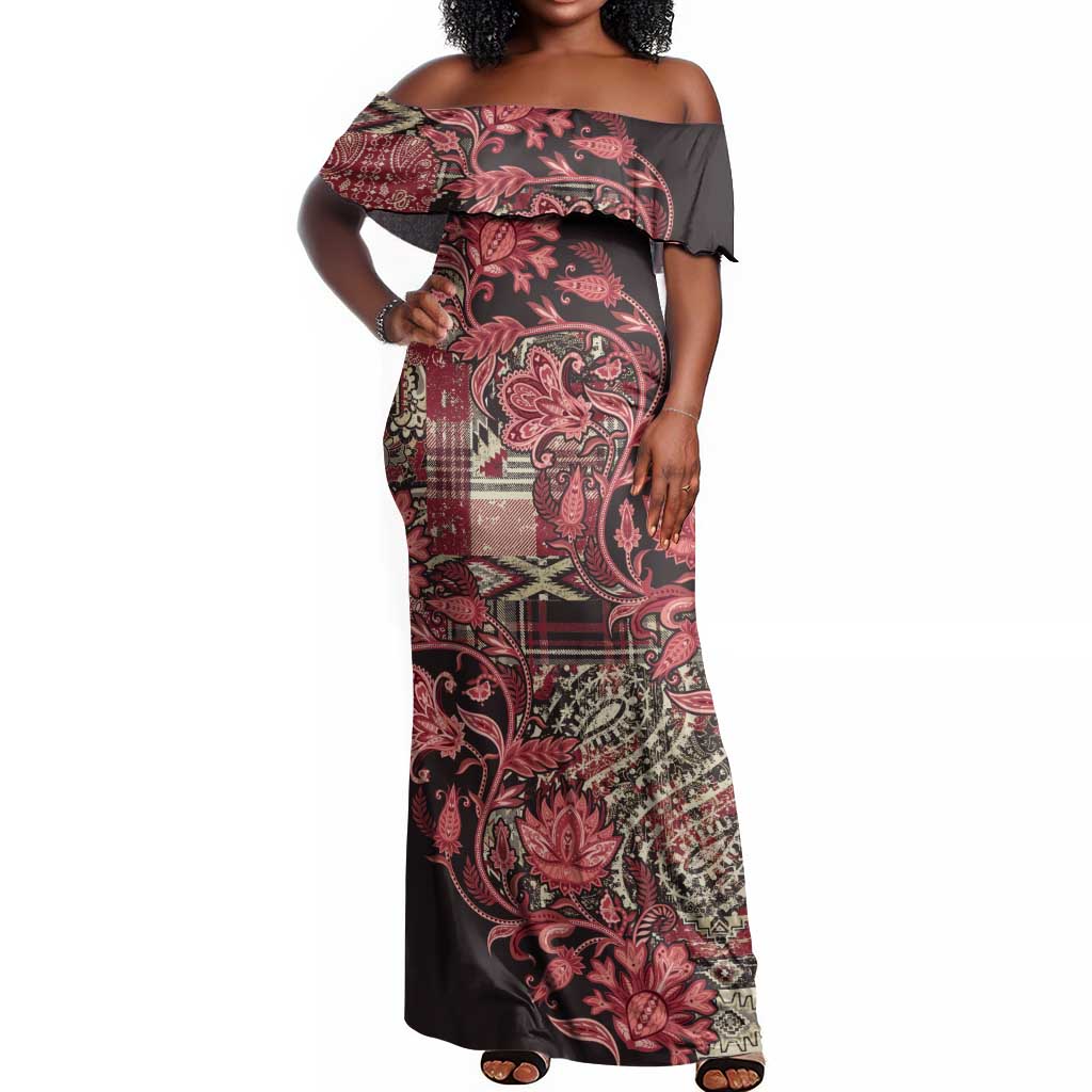 Afro Floral mix Maasai Shuka Off Shoulder Maxi Dress Red Moitf