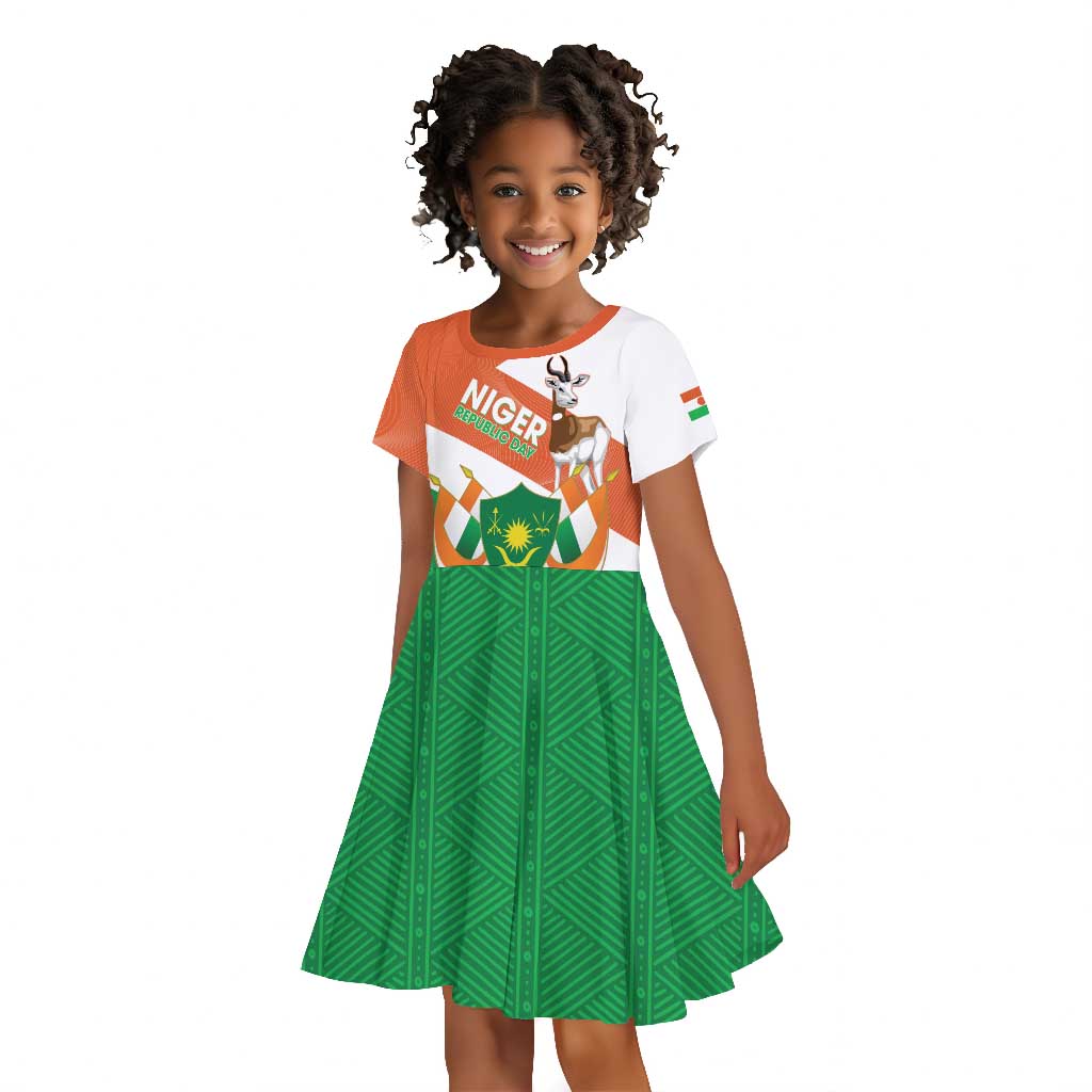 Afro Niger Kid Short Sleeve Dress Dama Gazelle African Pattern - Republic Day