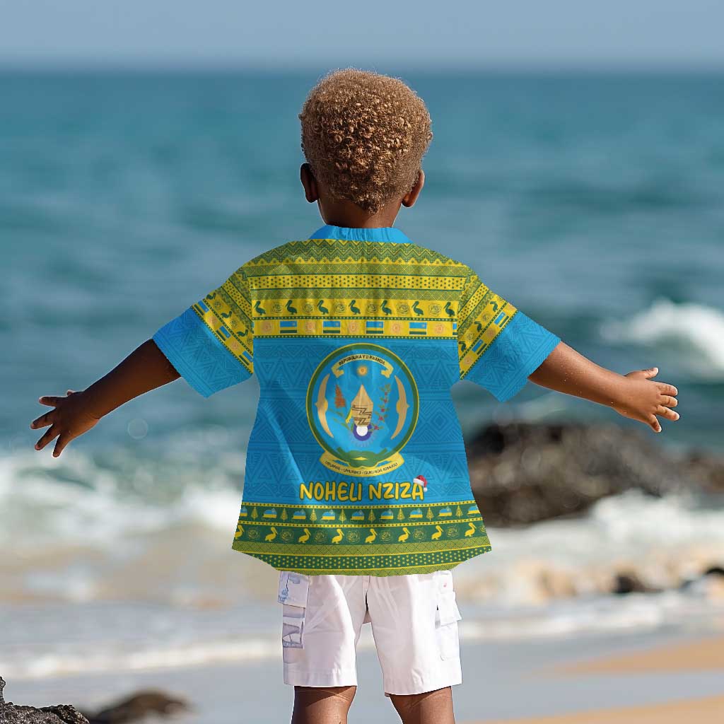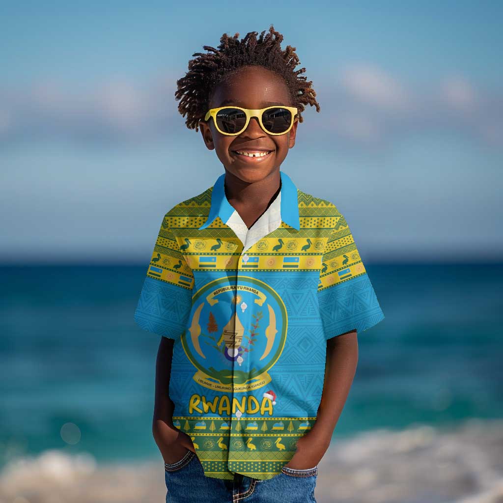 Afro Rwanda Christmas Kid Hawaiian Shirt Noheli Nziza Coat Of Arms - African Pattern