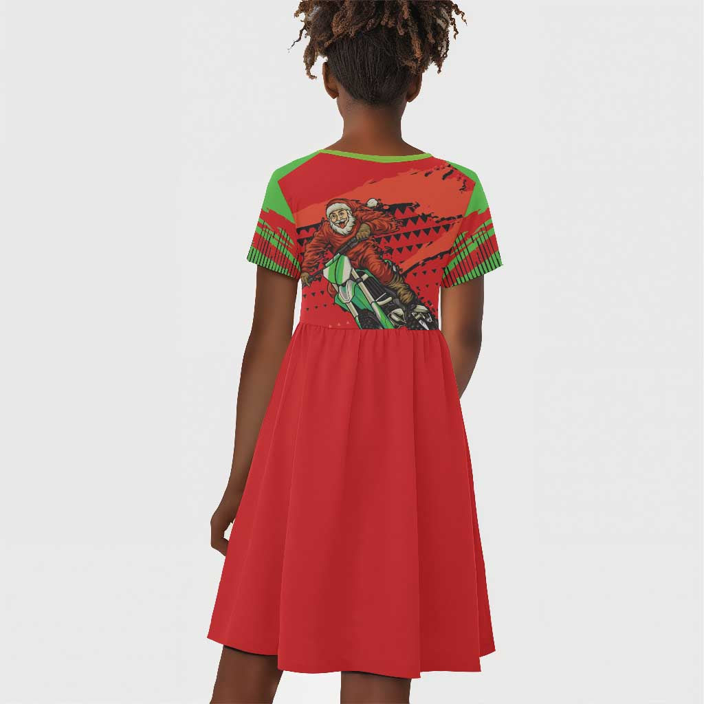 Afro Santa Braaap Kid Short Sleeve Dress Motorcross Christmas