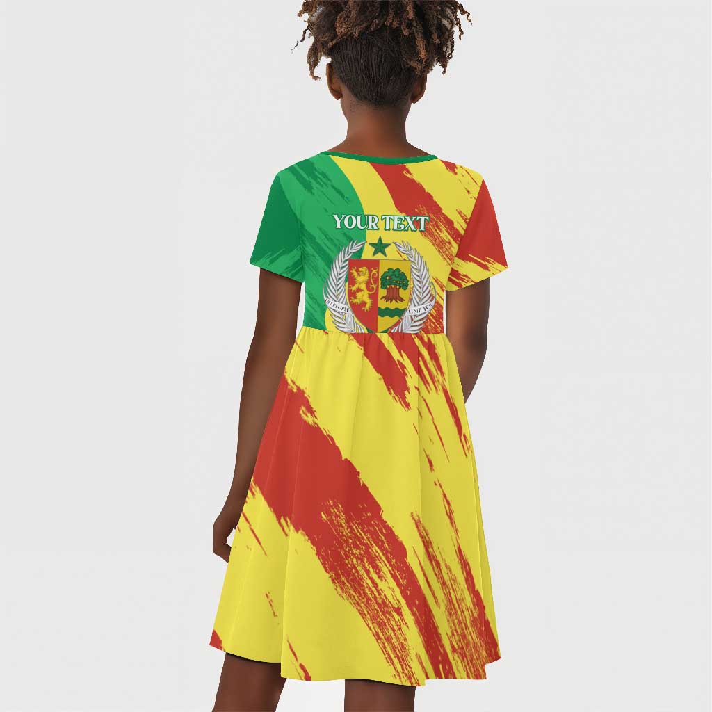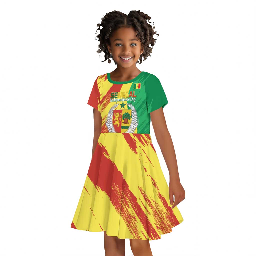 Afro Senegal Independence Day Kid Short Sleeve Dress Coat Of Arms Grunge Style