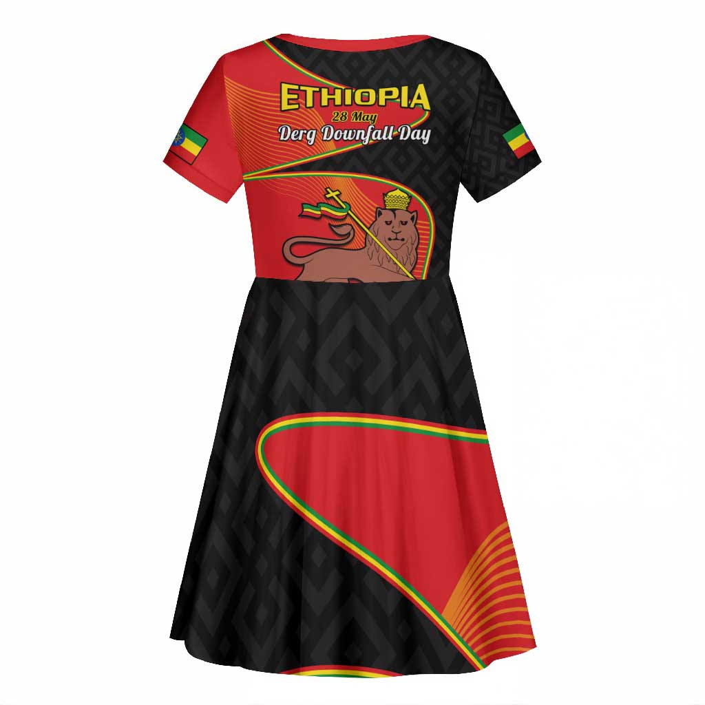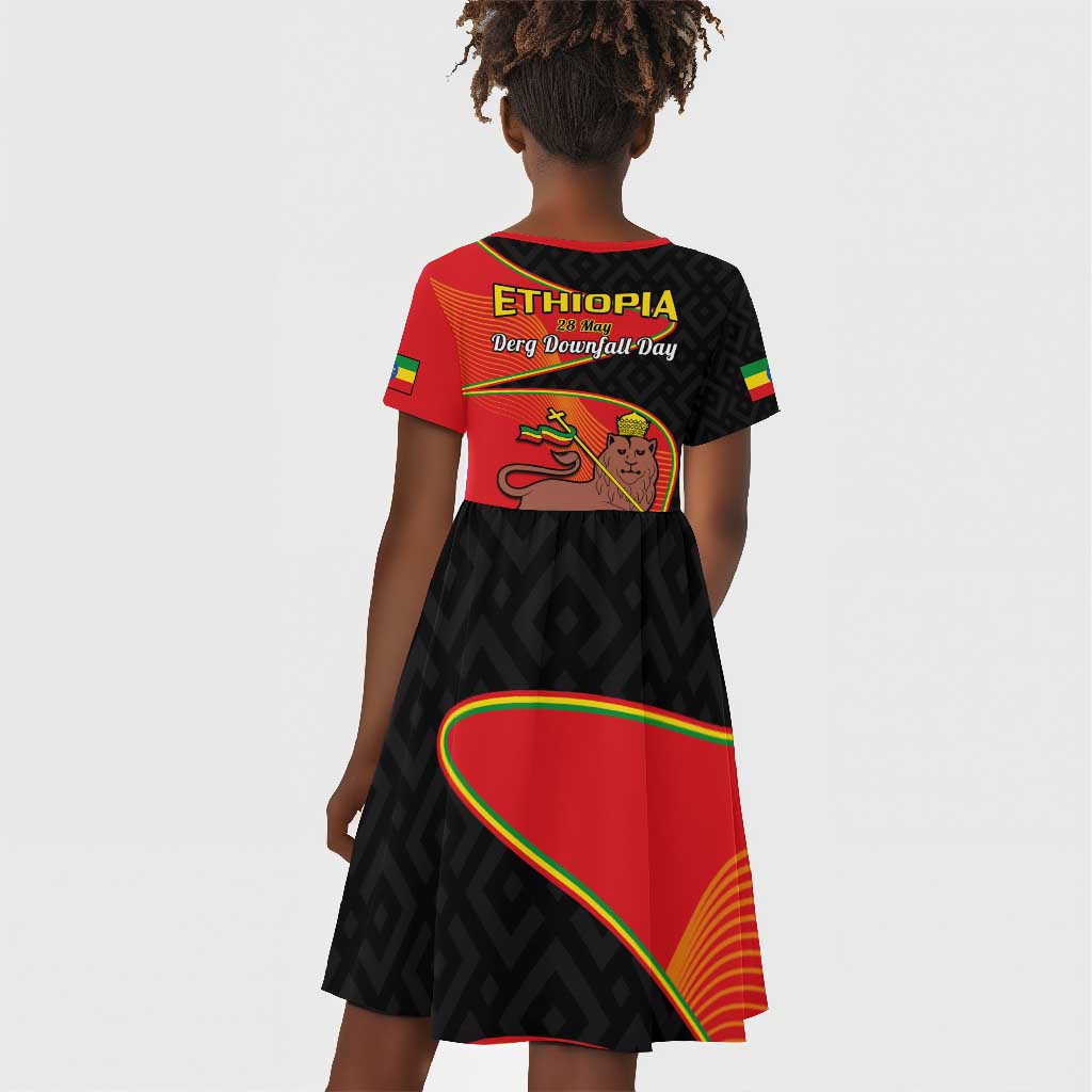 Ethiopia Derg Downfall Day Kid Short Sleeve Dress Ethiopian Lion of Judah