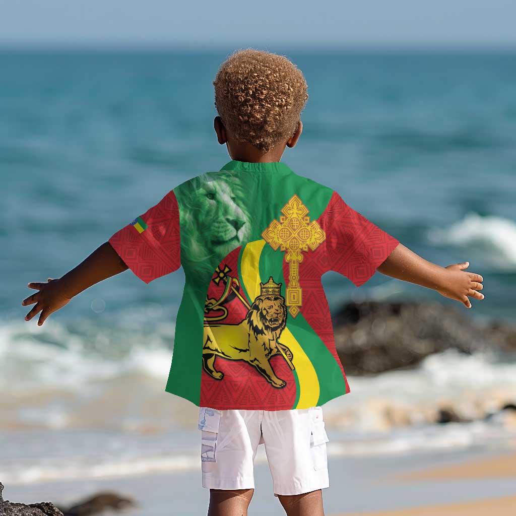 Ethiopia National Day Kid Hawaiian Shirt Ethiopia Lion of Judah African Pattern
