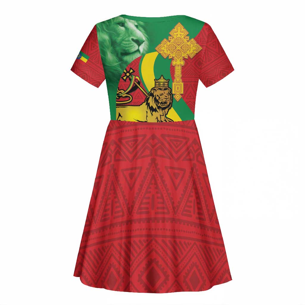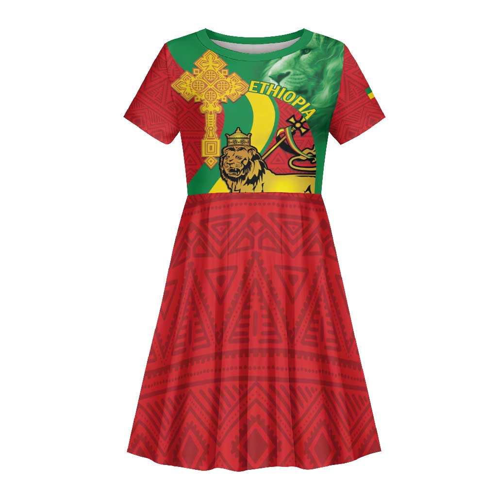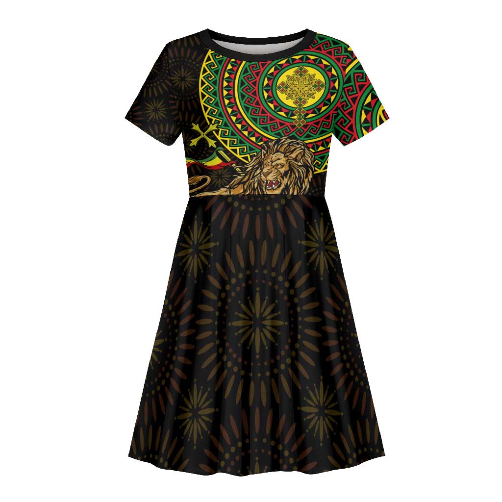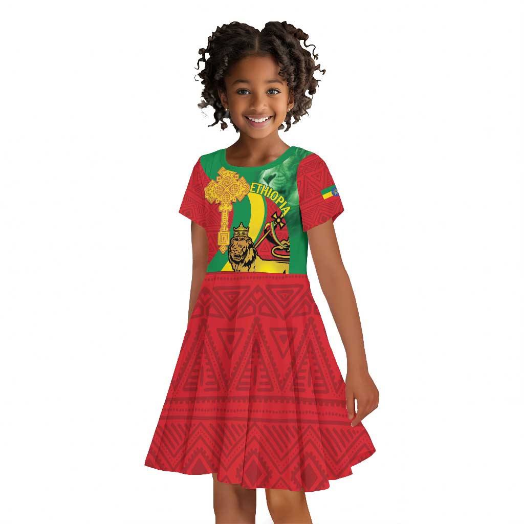 Ethiopia National Day Kid Short Sleeve Dress Ethiopia Lion of Judah African Pattern