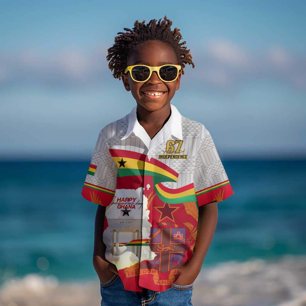 Ghana Independence Day Kid Hawaiian Shirt with Freedom and Justice and African Pattern