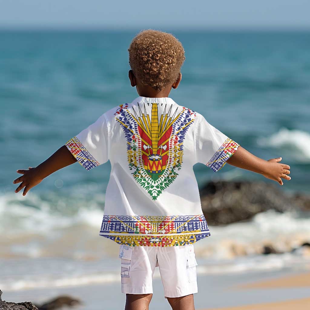 Haiti Flag Kid Hawaiian Shirt Traditional Dashiki White Color