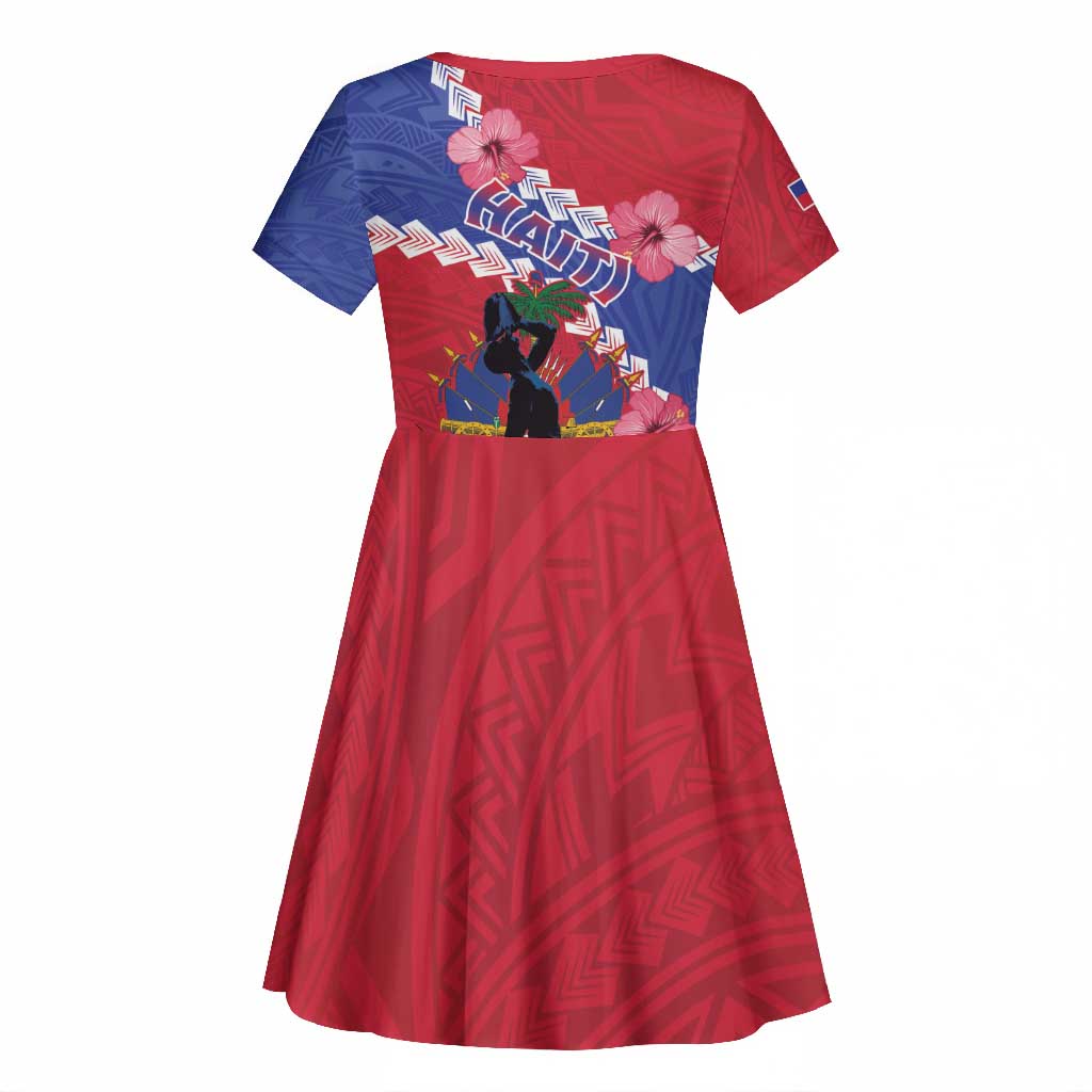 Haiti Neg Maron Kid Short Sleeve Dress Coat Of Arms - Hisbicus Polynesian