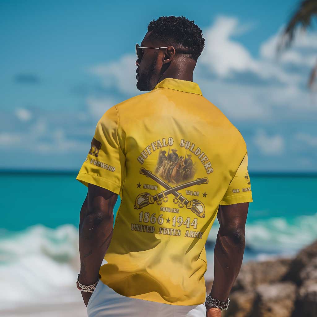 Honor Buffalo Soldiers Hawaiian Shirt African American Cavalry Yellow Version