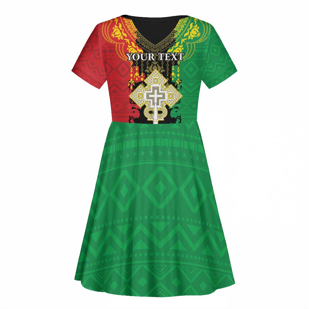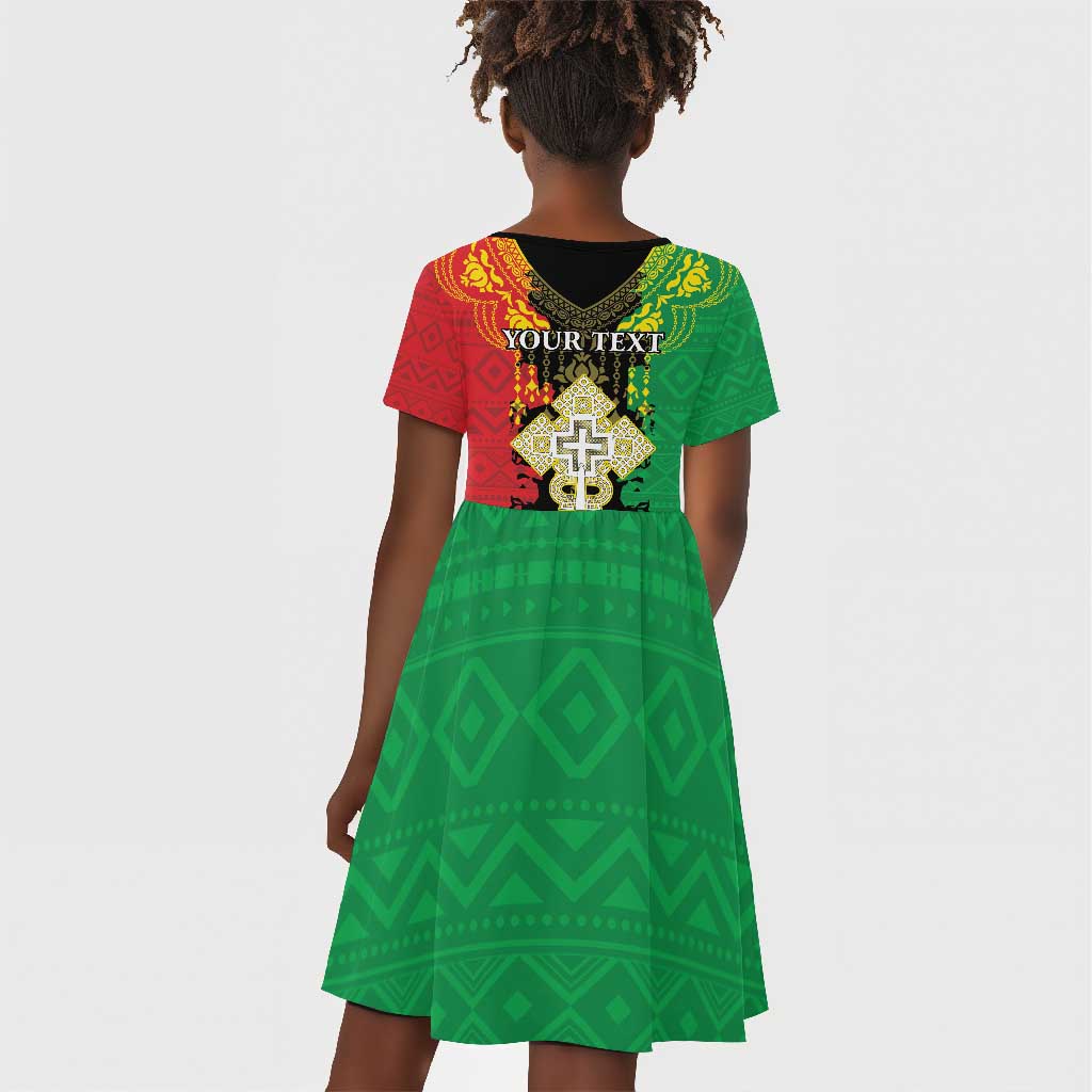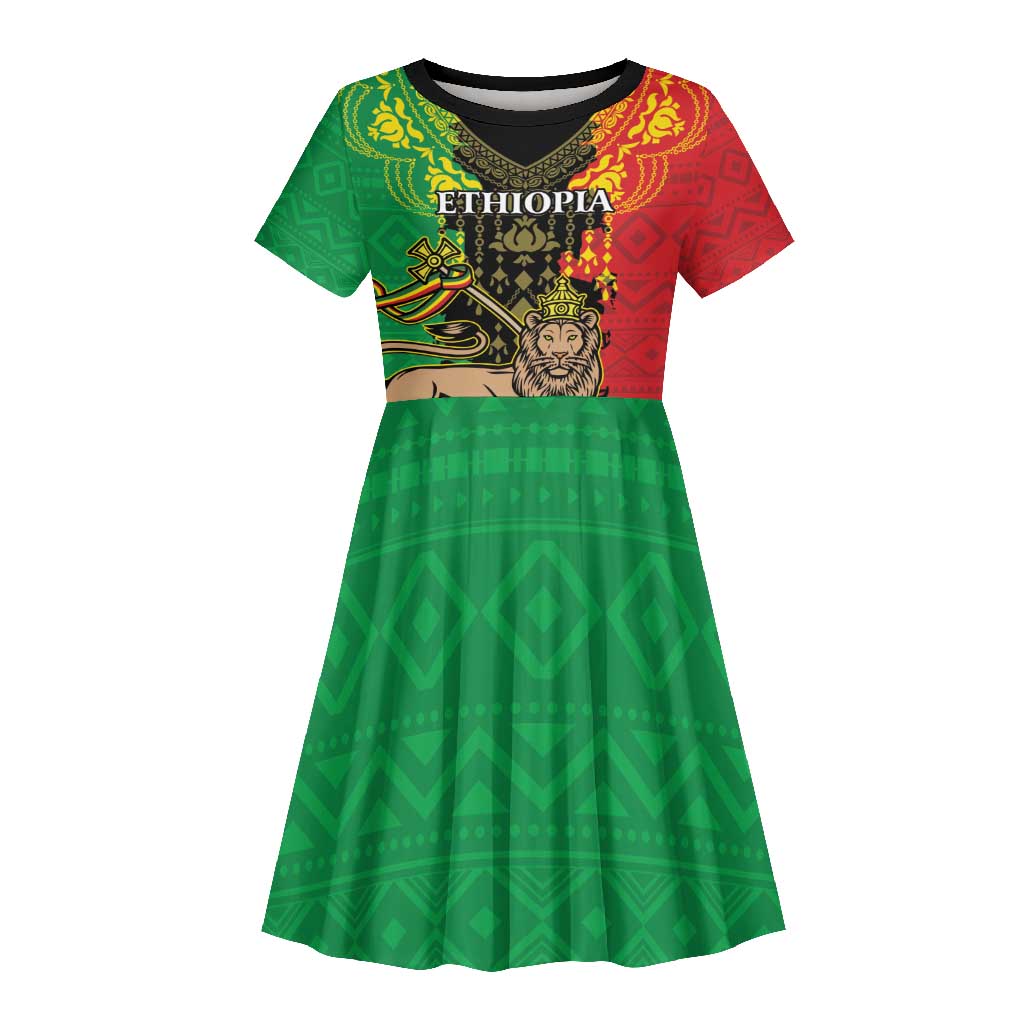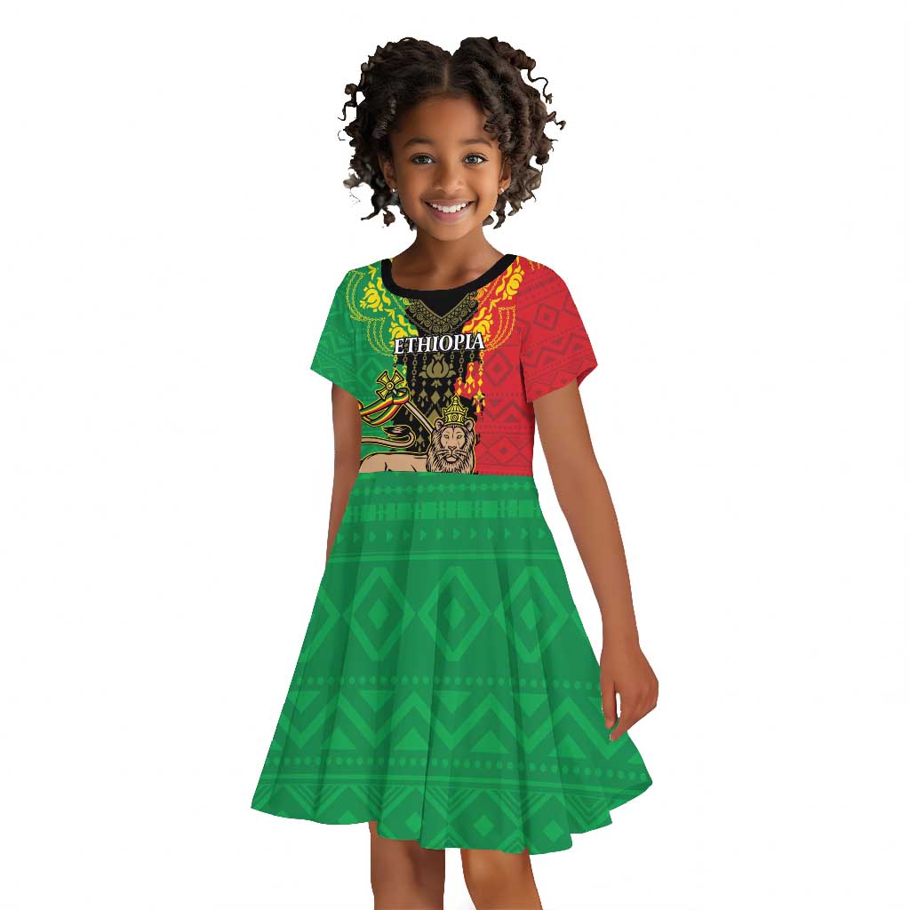Personalised Afro Ethiopia Kid Short Sleeve Dress Lion Of Judah - African Pattern