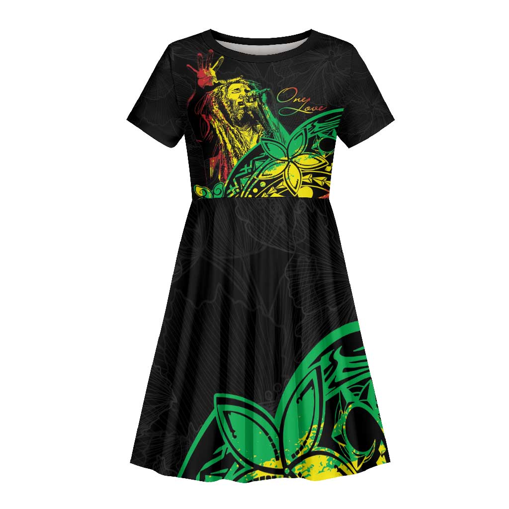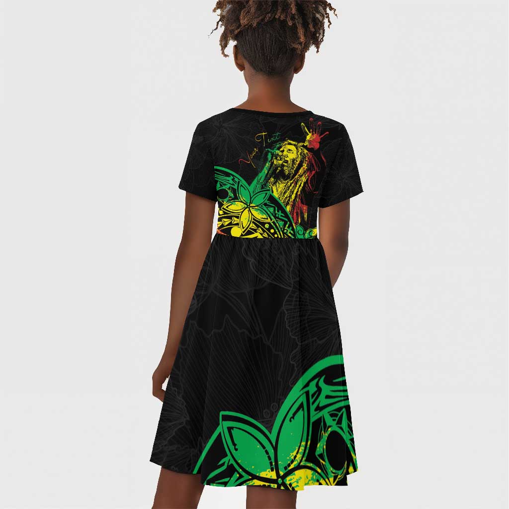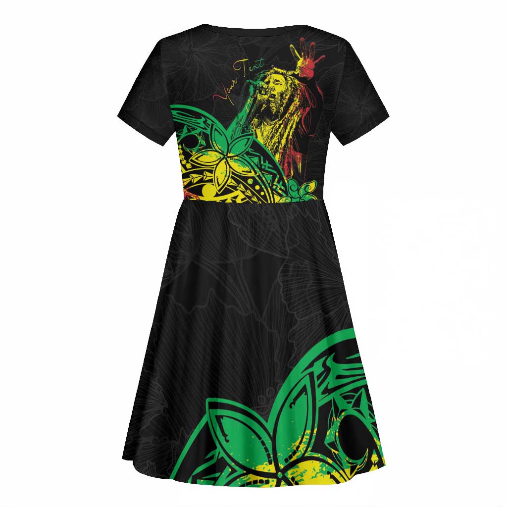 Personalised Jawaiian Reggae Kid Short Sleeve Dress Afro-Polynesian Style