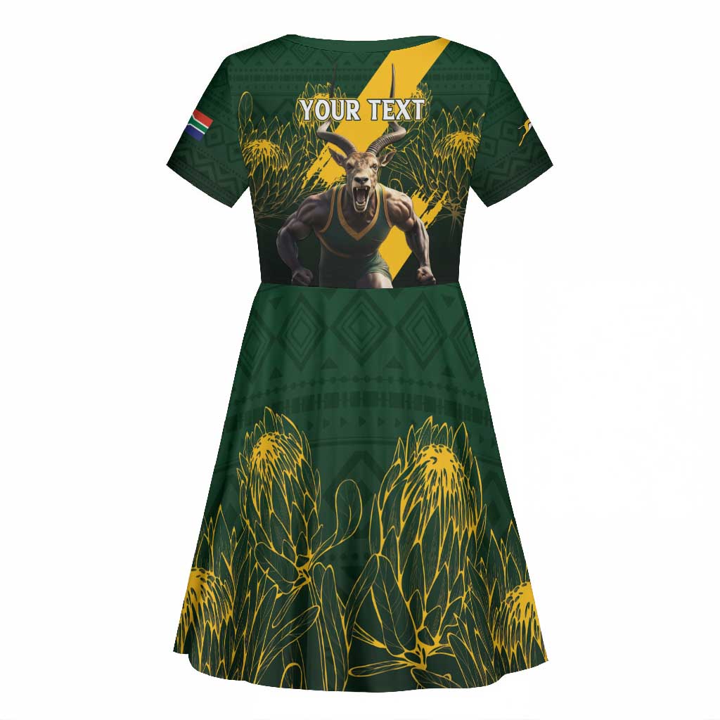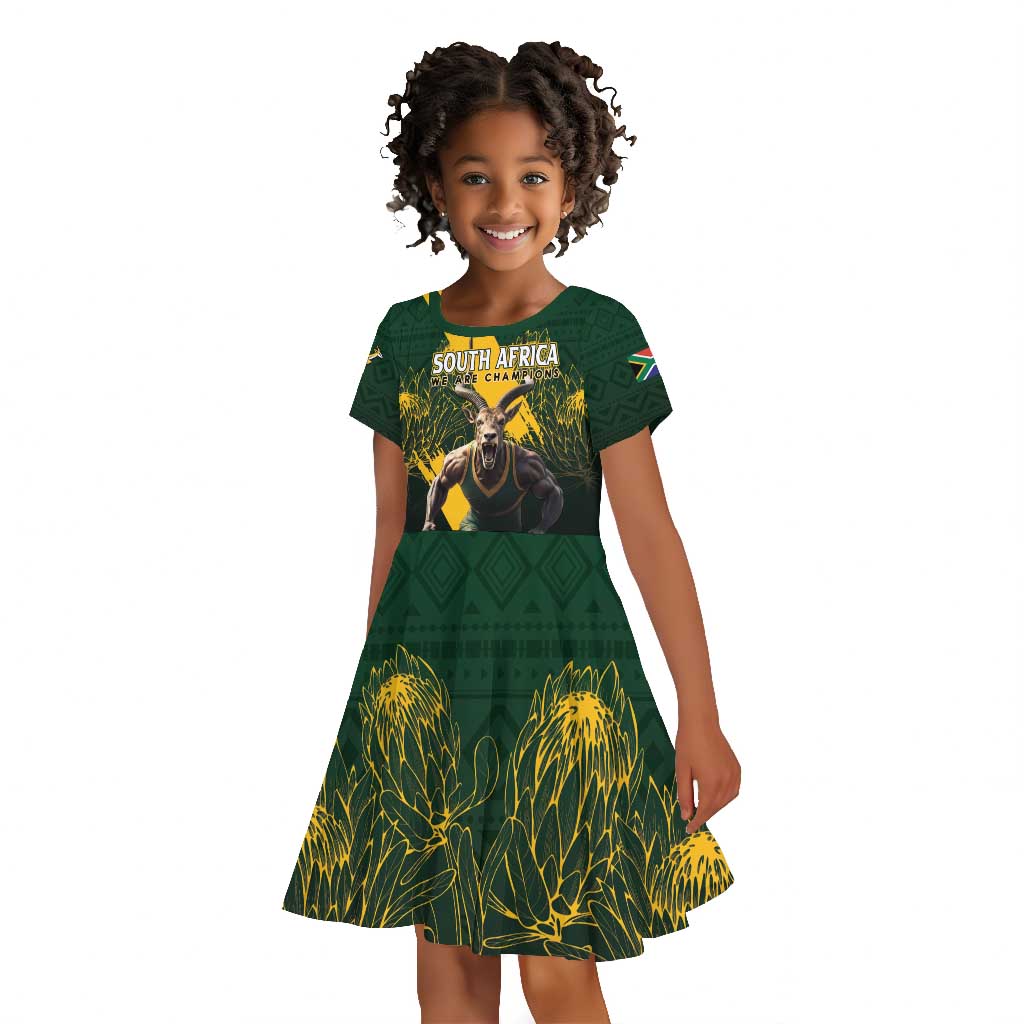 Personalised South Africa Rugby Kid Short Sleeve Dress Proud Bokke We Are Champions