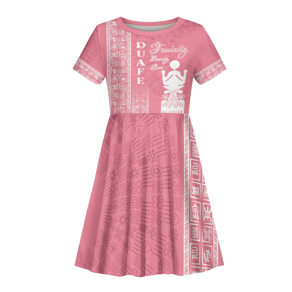 Personalized Adinkra Afro-Akan Culture Kid Short Sleeve Dress Duafe - Women's Day
