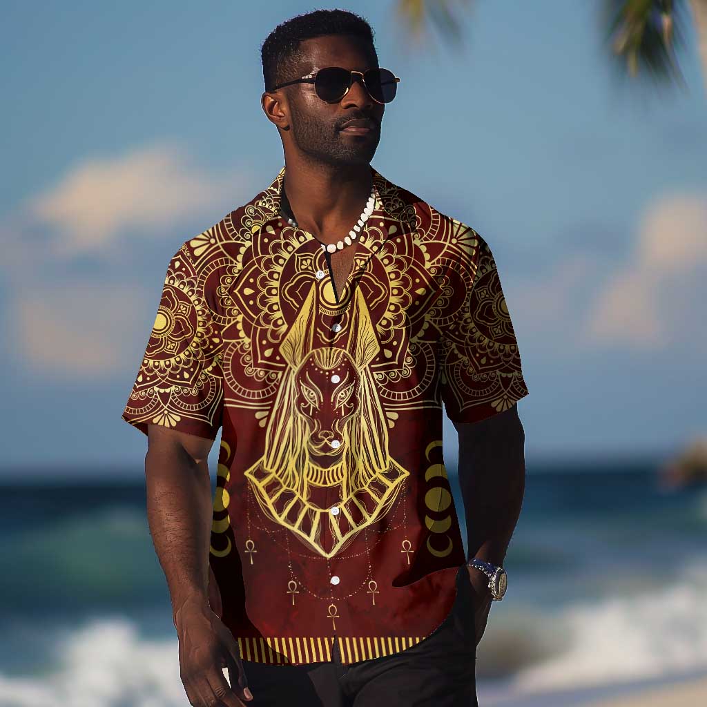 Personalized Anubis Hawaiian Shirt Ancient Egyptian Pattern In Red