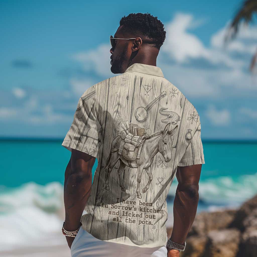 Zora Neale Hurston Hawaiian Shirt Rustic Wood Engraved Style Illustration Joyful Portrait with Book and Map Donkey