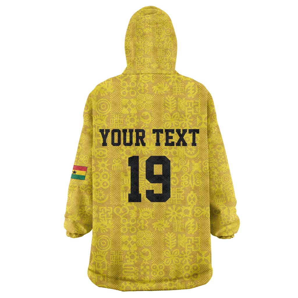 Custom World Football 2026 Ghana Kid Wearable Blanket Hoodie Black Stars Rise with Yellow Adinkra Pattern