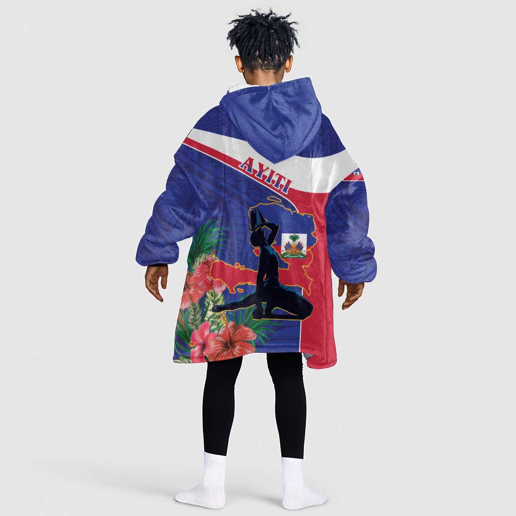 Haiti Neg Marron Kid Wearable Blanket Hoodie Ayiti Map - Hibiscus Polynesian Pattern