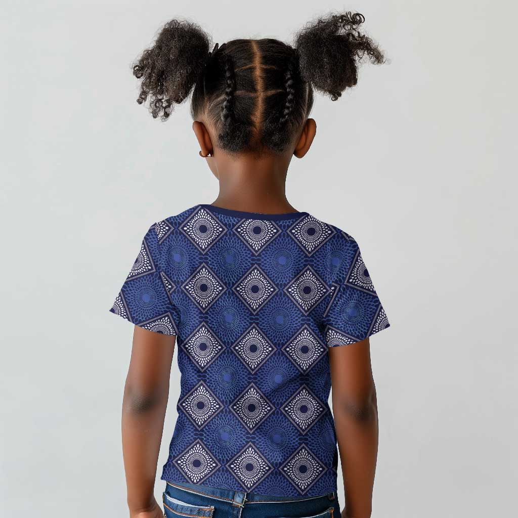 Indigo Diamond African Ankara Pattern Kid T shirt