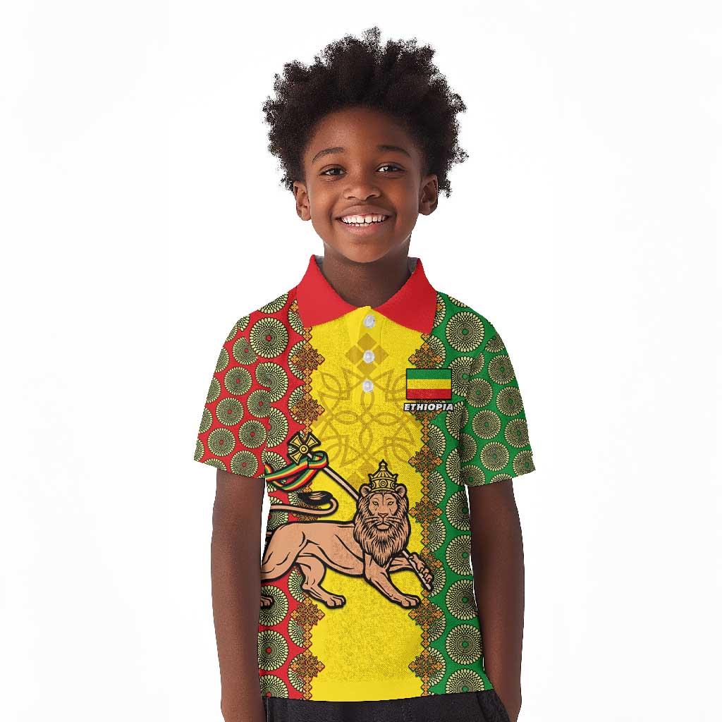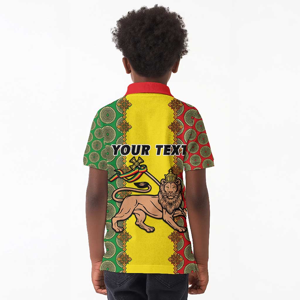 Personalized Ethiopia Kid Polo Shirt with Lion of Judah and African Pattern Design