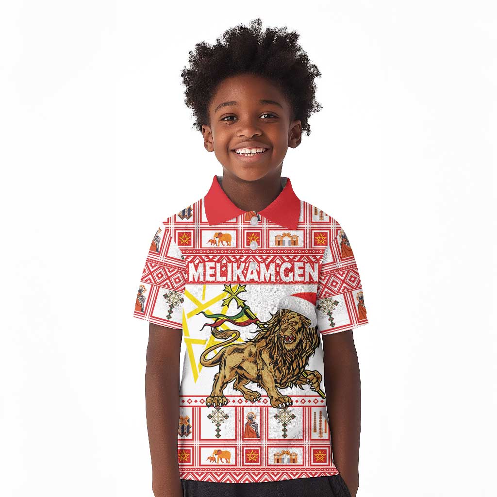 Personalized Ethiopia Melikam Gena Kid Polo Shirt Merry Christmas Lion of Judah