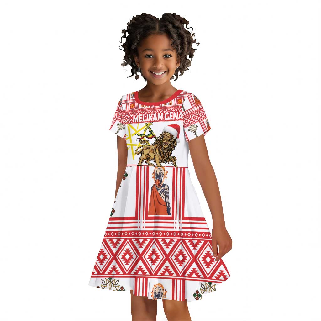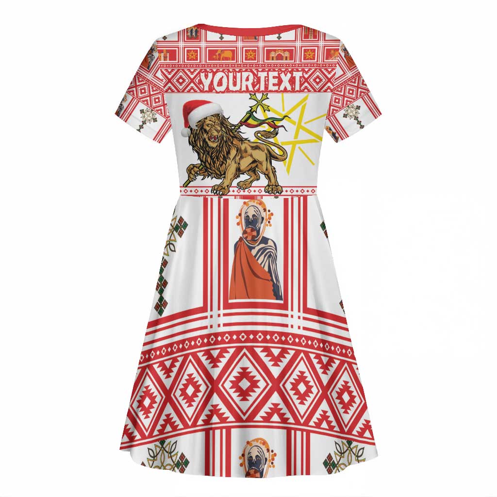 Personalized Ethiopia Melikam Gena Kid Short Sleeve Dress Merry Christmas Lion of Judah