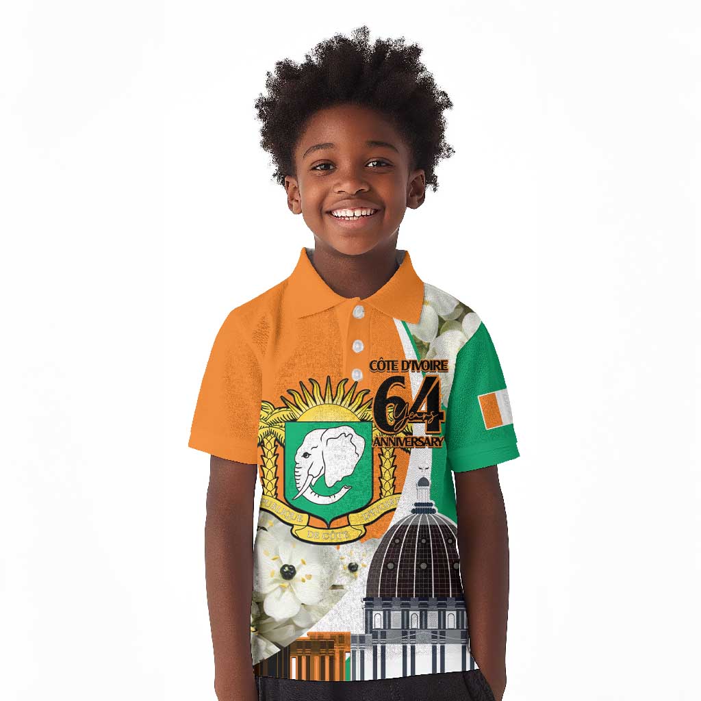 Personalized Ivory Coast Independence Day Kid Polo Shirt Ornithogalum Arabicum Happy 64 Years Anniversary