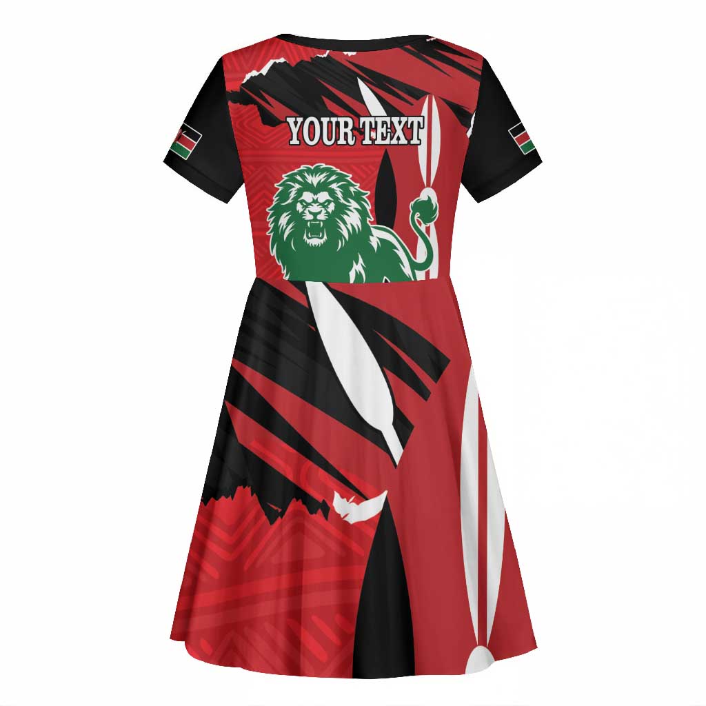 Personalized Jamhuri Day 1963 Kid Short Sleeve Dress Angry Lion With African Shield