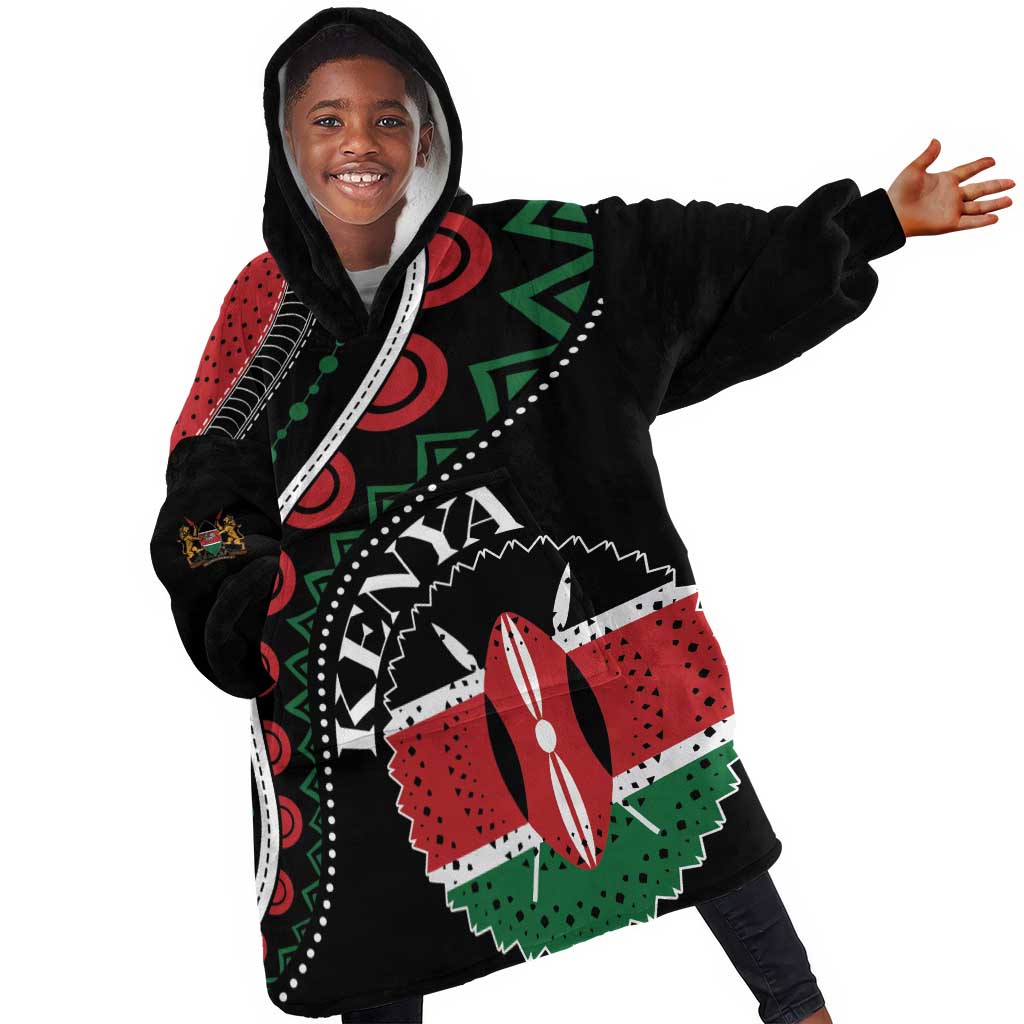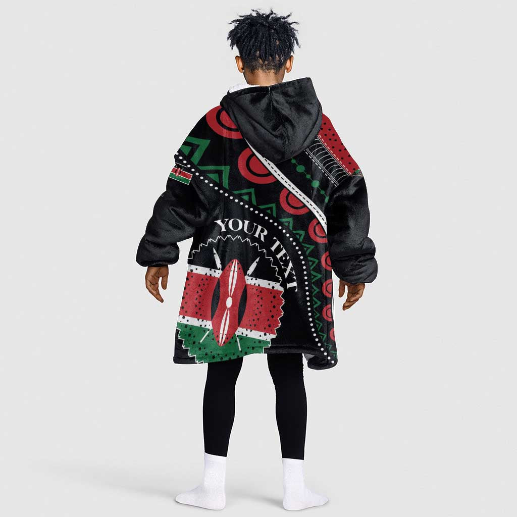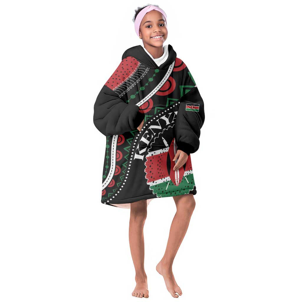 Personalized Kenya Kid Wearable Blanket Hoodie Harambee African Pattern - Coat of Arms Design