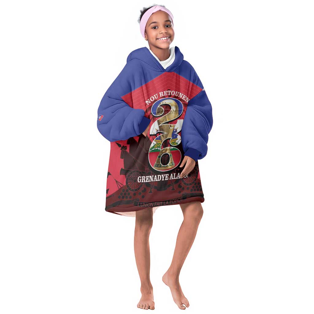 Personalized Les Grenadiers Haiti Football Kid Wearable Blanket Hoodie 2026 Nou Retounen Red Version