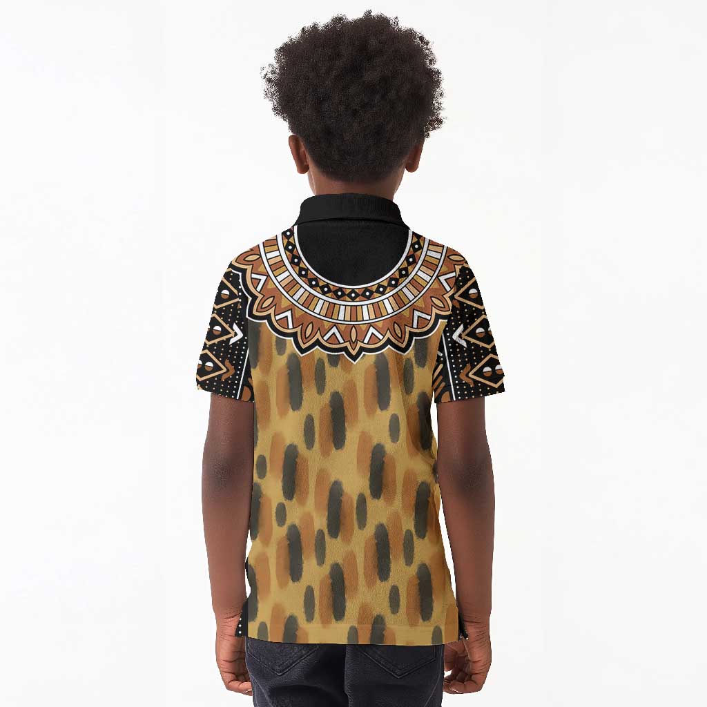 Printed Mud Cloth and Adinkra Symbol Kid Polo Shirt
